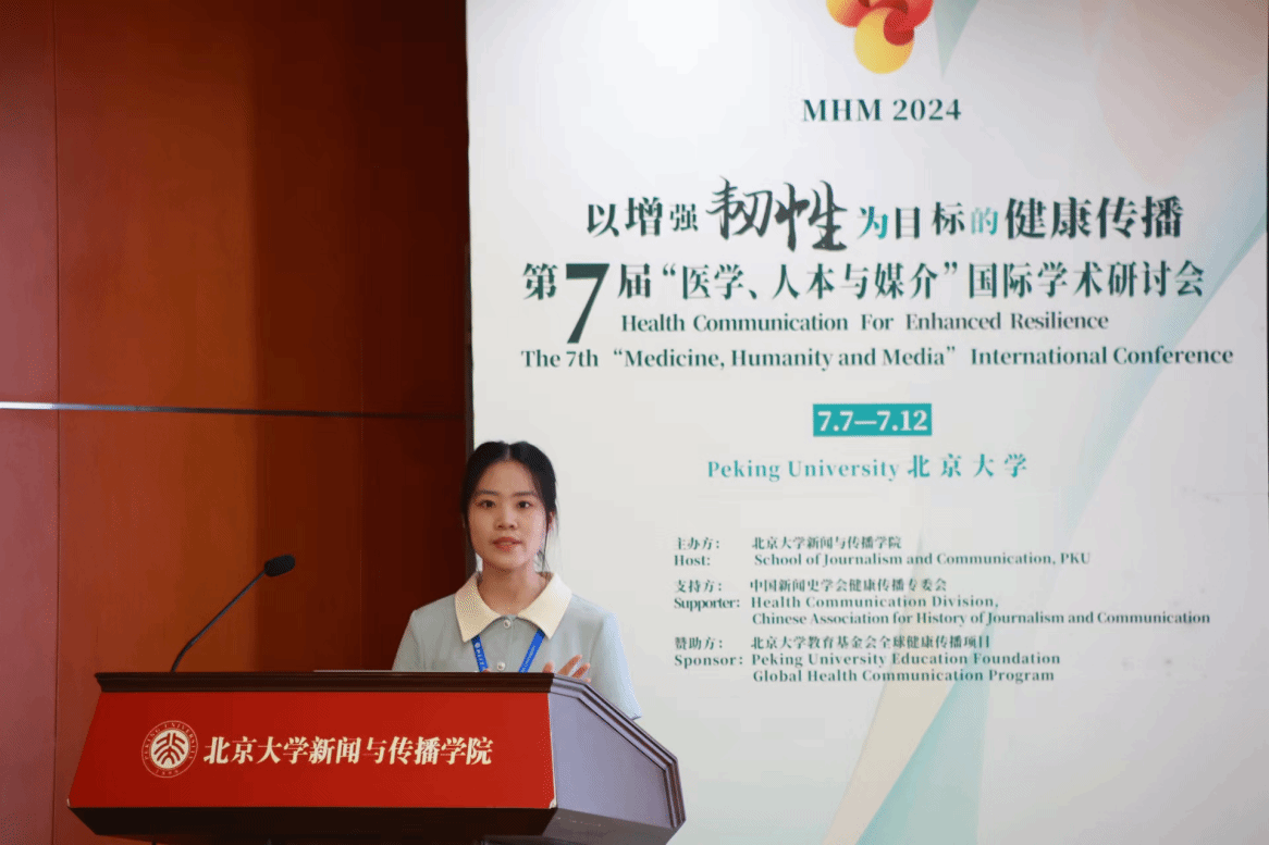 2024年7月7日至12日,第七届“医学、人本与媒介”国际学术研讨会(The International Conference of “Medicine, Humanity and Media”,简称MHM)在北京大学召开,来自国内外三十余所高校的百余位学者围绕“以增强韧性为目标的健康传播”主题,探讨如何立足现实语境,开展对话与合作。365英国上市教师马旭带领2023级新闻与传播和广播电视专业研究生代表参会并分享研究论文。