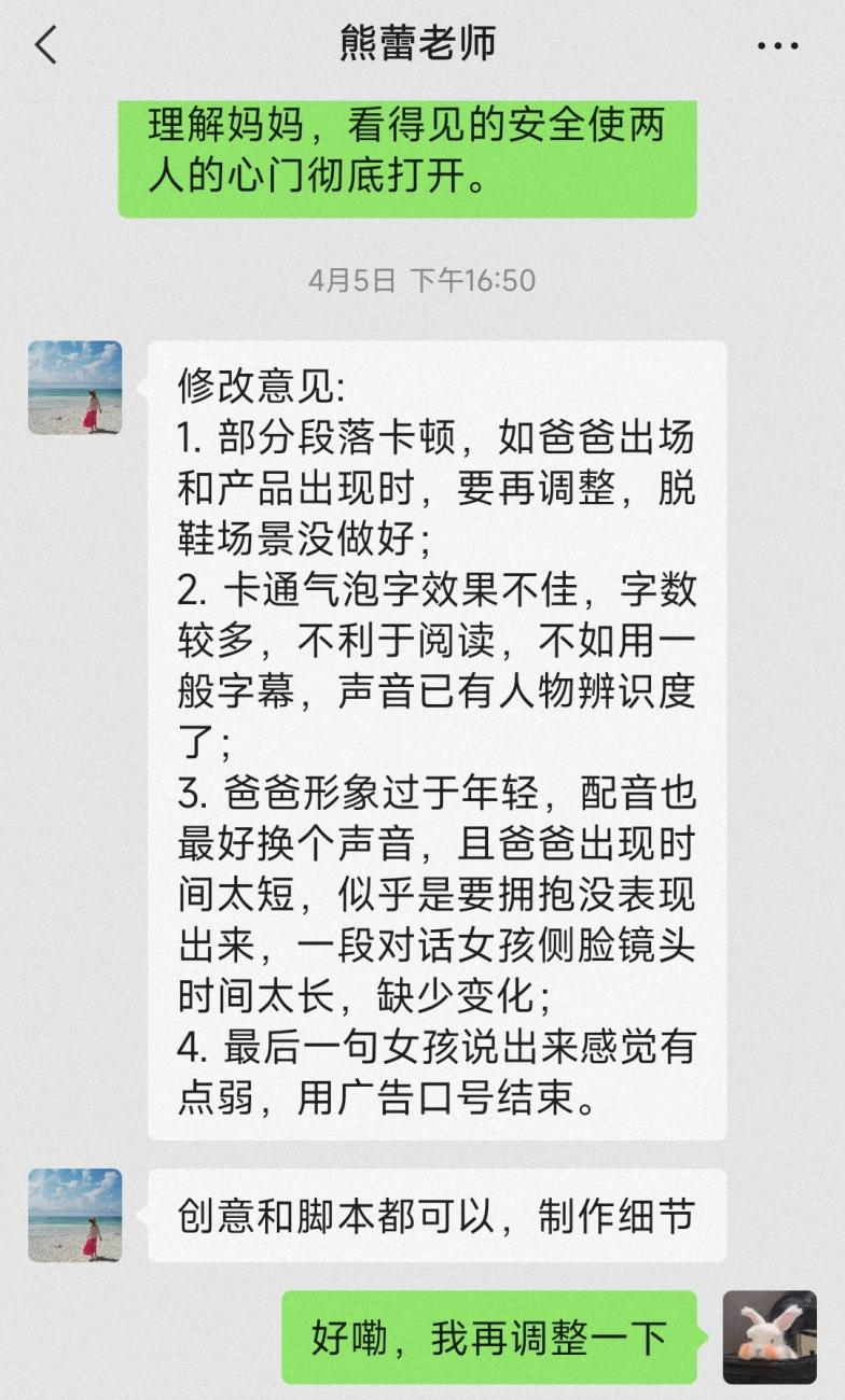 在作品的审核与修改中,熊老师始终将细心负责与引导我们独立思考贯彻始终。每一次做作品的时候,我容易进入一个误区,可能是花费了大量心血和努力完成的作品,因为有了付出所以我总是认为它是“完美的”。每当我把作品交给熊老师指导的时候,老师都非常认真地给出指导意见:例如大广赛的广播,前面的铺垫过于短;公司奖的视频,从画面的过渡、形式以及文案、声音等等无不细致地给出了许多宝贵的修改意见,每一条令我豁然开朗,她还经常针对作品中的具体问题与我们展开讨论,熊老师的亲和力和强大的理论逻辑使得我在老师身上学到了许多,在她的带领下,我完成了一件件更加完整的比赛作品。