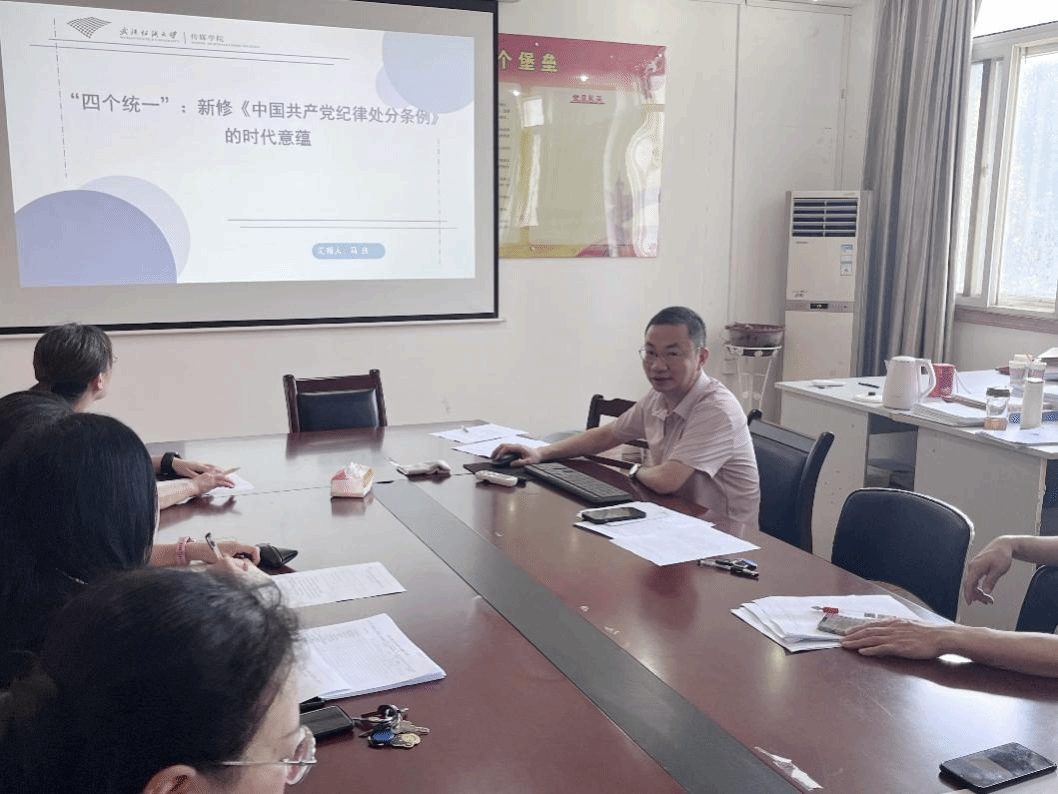 6月27日,新闻教师党支部书记马庆讲授纪律党课。