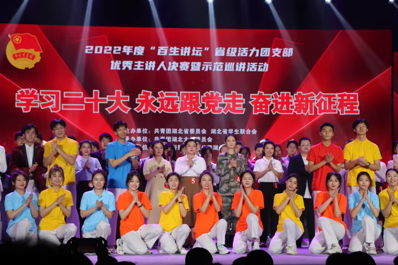2022年度“百生讲坛”省级优秀主讲人、活力团支部决赛暨示范巡讲活动由共青团湖北省委员会和湖北省员工联合会主办,由共青团湖北大学委员会承办。本次大赛主题为“学习二十大,永远跟党走,奋进新征程”。活动以娓娓道来的形式讲述主讲人故事,以“青春”“宣叙”为基调,彰显青年学子对于国家和民族的赤诚之心和自豪之情,表达了一代代青年学子与祖国同频共振,立志做有理想、敢担当、能吃苦、肯奋斗新时代好青年,为中华民族的伟大复兴而自强奋斗的决心。