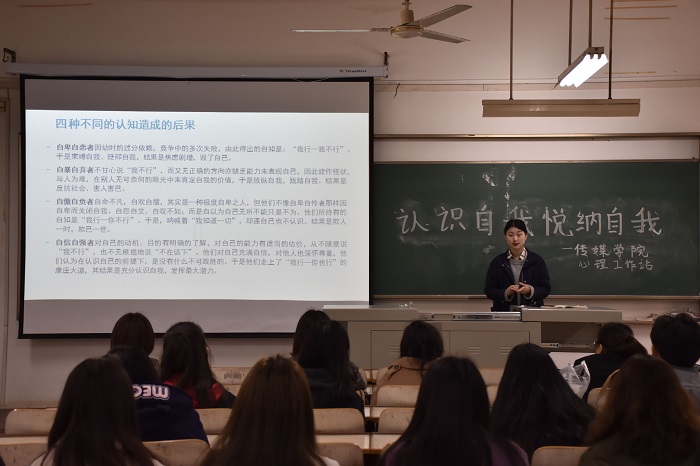 2018年3月22日下午两点在综合楼5209,365英国上市组织全院心理委员和心理工作站全体成员进行了以“认识自我,悦纳自我”为主题的心理培训。培训主讲人是心理工作站负责人张晨。