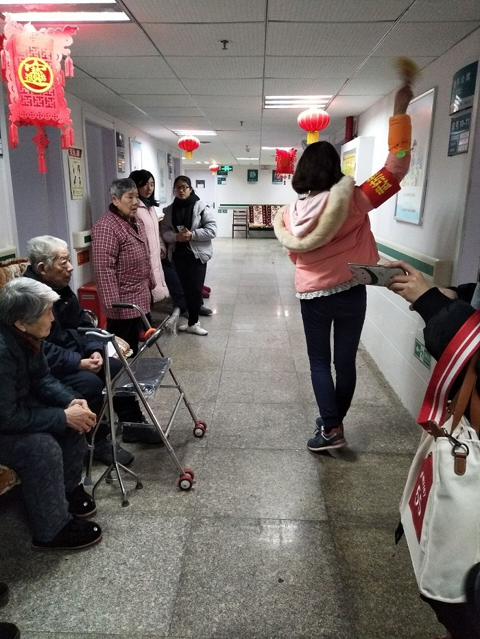 下午2:30志愿者正式进入老人院,老人们刚刚午休起来,有些坐在走廊中,有些仍在房间里。志愿者们按照顺序进入老人院,很惊讶,走廊的部分老人家竟然会主动给我们打招呼,这让志愿者对这次活动有了信心。看着老人们和蔼的笑容,我想,岁月在她们脸上留下了痕迹,但她们其实是被遗忘了的天使,不一定美丽,但必定暖人。
