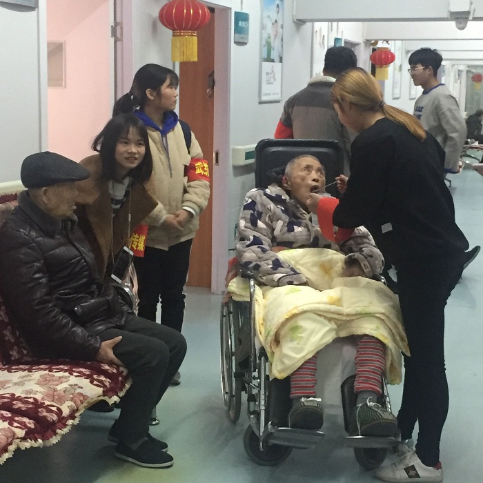 3:00左右,老人们和志愿者差不多都已经熟悉。在相处之中,志愿者得知有些老人家并不愿意住在老人院,有的只是为了替孩子减轻负担......听着这些话,心里不免有些替她们心酸。好在,我们来了,我们不愿意让这些老人家孤单。活动期间,志愿者给老人们表演打太极,唱红歌,谈心,讲笑话,打扫卫生等等,志愿者在尽她们最大的努力去温暖这些孤单的天使。