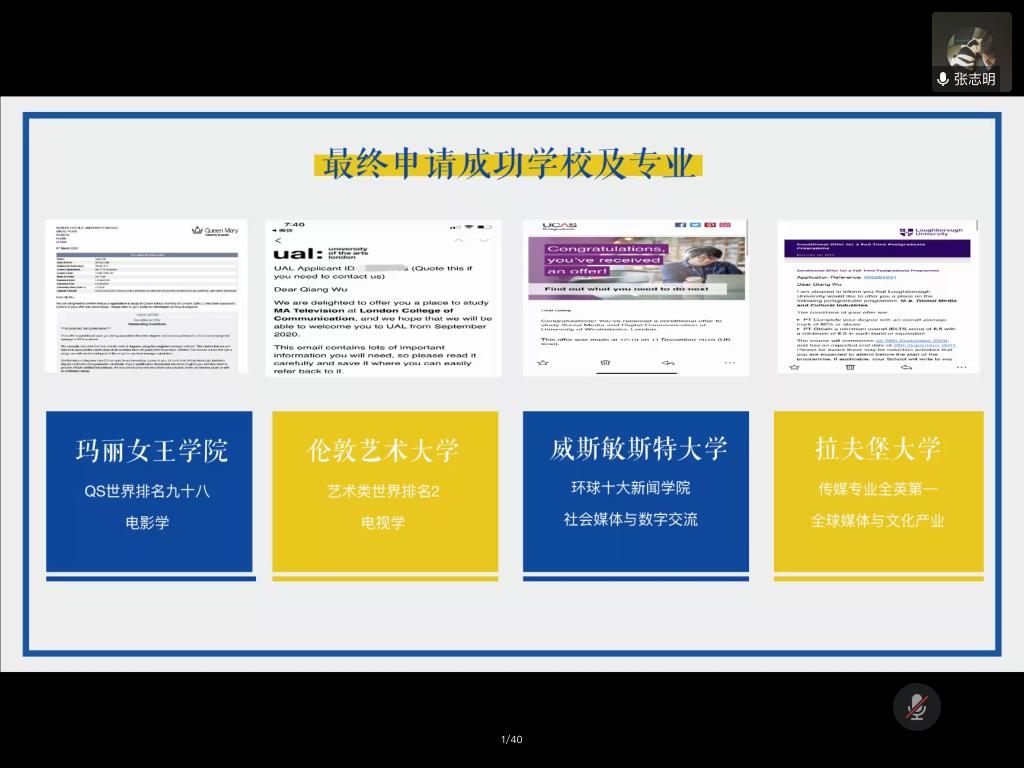 吴强同学分享了自己为何要出国留学和自己这大学四年的学习生活经历,告诉学弟学妹们一定要好好学习,提高均分并且加强社会实践,申请留学是对你大学四年成绩和经历的全方位考核,均分越高,优势越大。