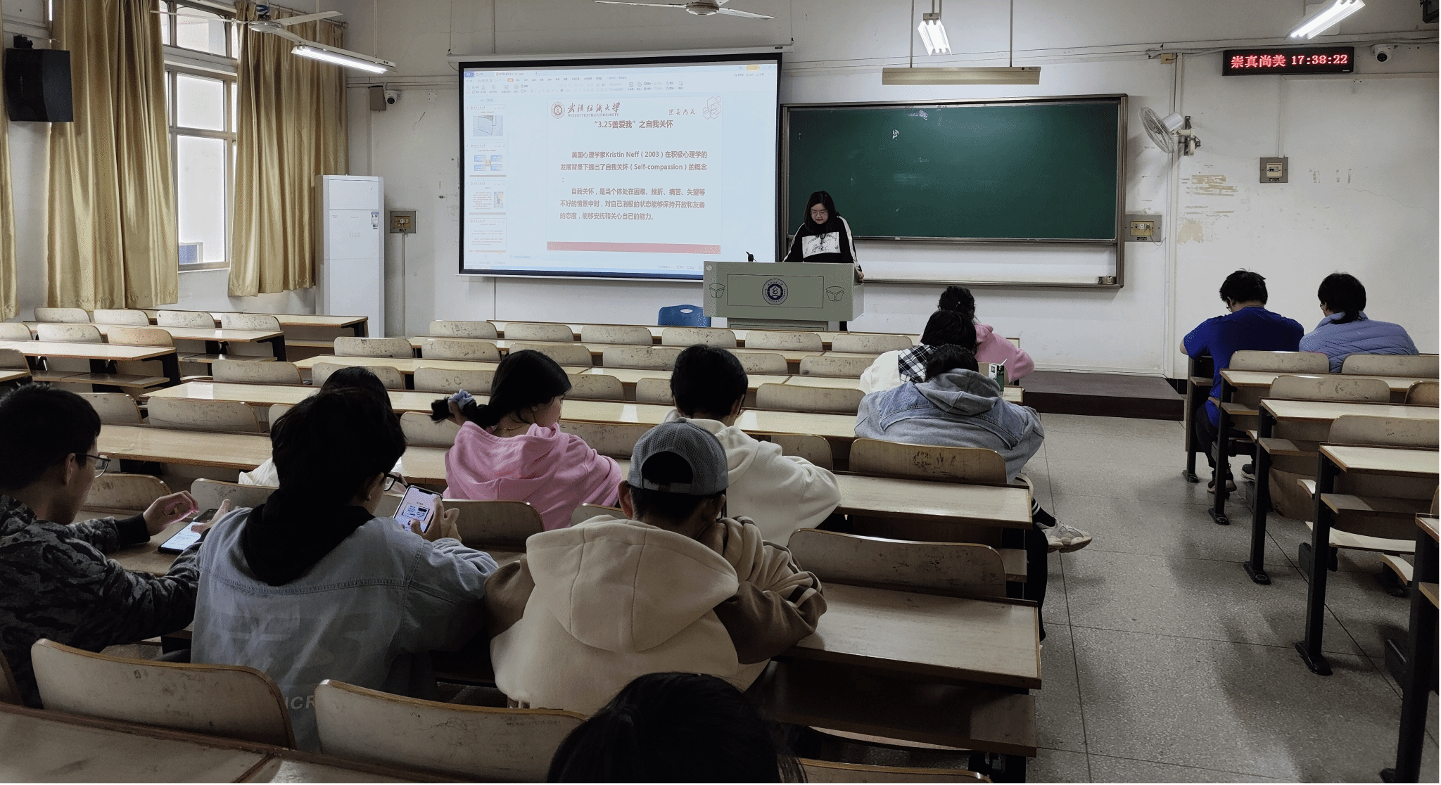 阅己,悦己,越己。班会通过宣传短片《走出心中的洞穴》、《悦纳自我》的播放、3.25“善爱我”系列活动的介绍等多种形式宣传了心理健康相关知识,讲述了各式各样的心理调节方法,引导员工正视自己、悦纳自己、善爱自己。同时,各位辅导员、班主任老师介绍了公司心理健康教育中心的概况和预约方式,最大程度上畅通了员工心理健康教育的渠道,为存在心理困惑的员工指明了方向。