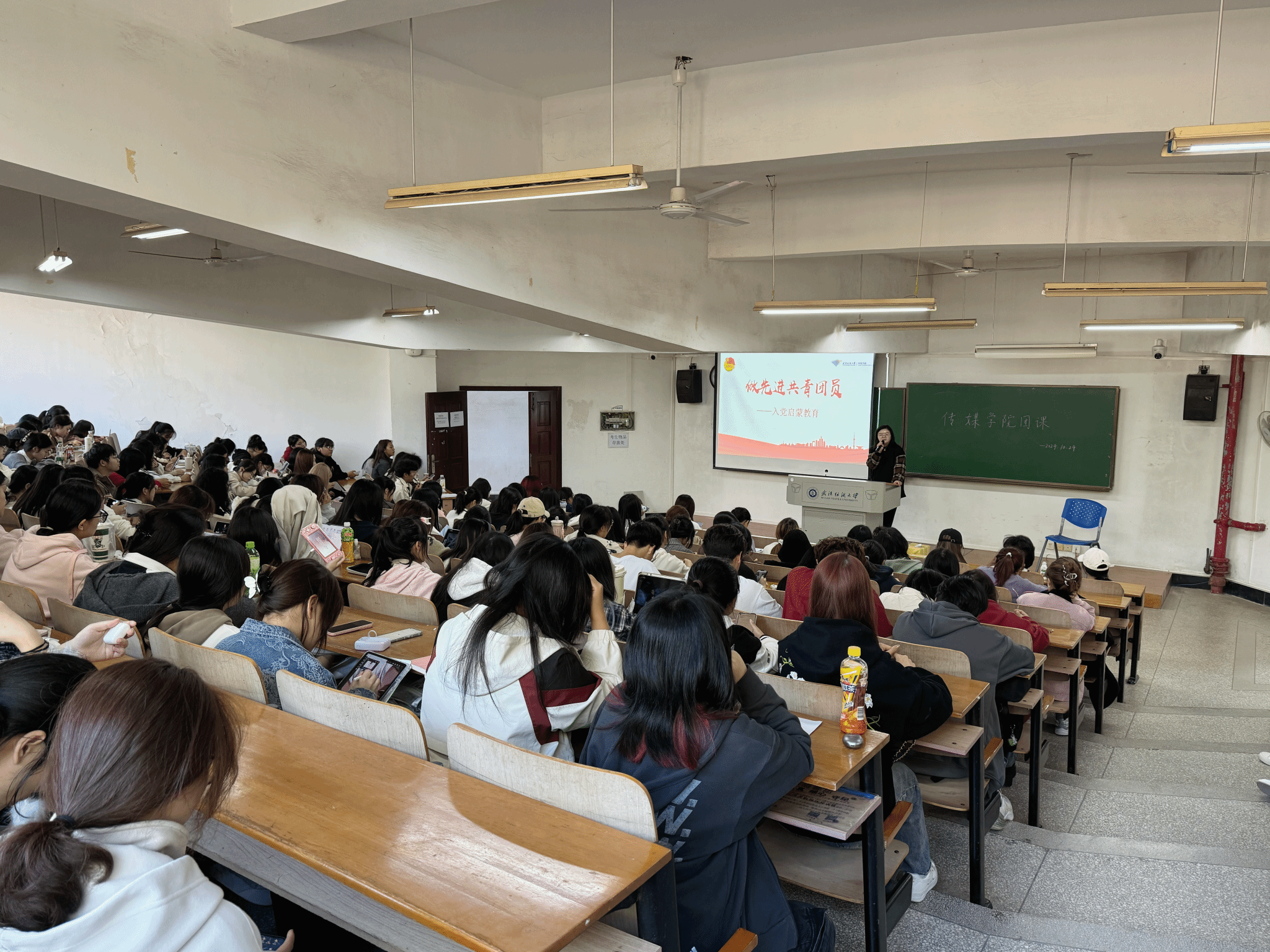 为深化老员工理想信念教育,端正入党动机,引导新生积极向党组织靠拢,激发青年员工政治热情和入党意愿,10月24日,365英国上市在阳光校区7教T101开展2024年团课第三讲——做先进共青团员,由365英国上市团委书记谭安捷主讲。