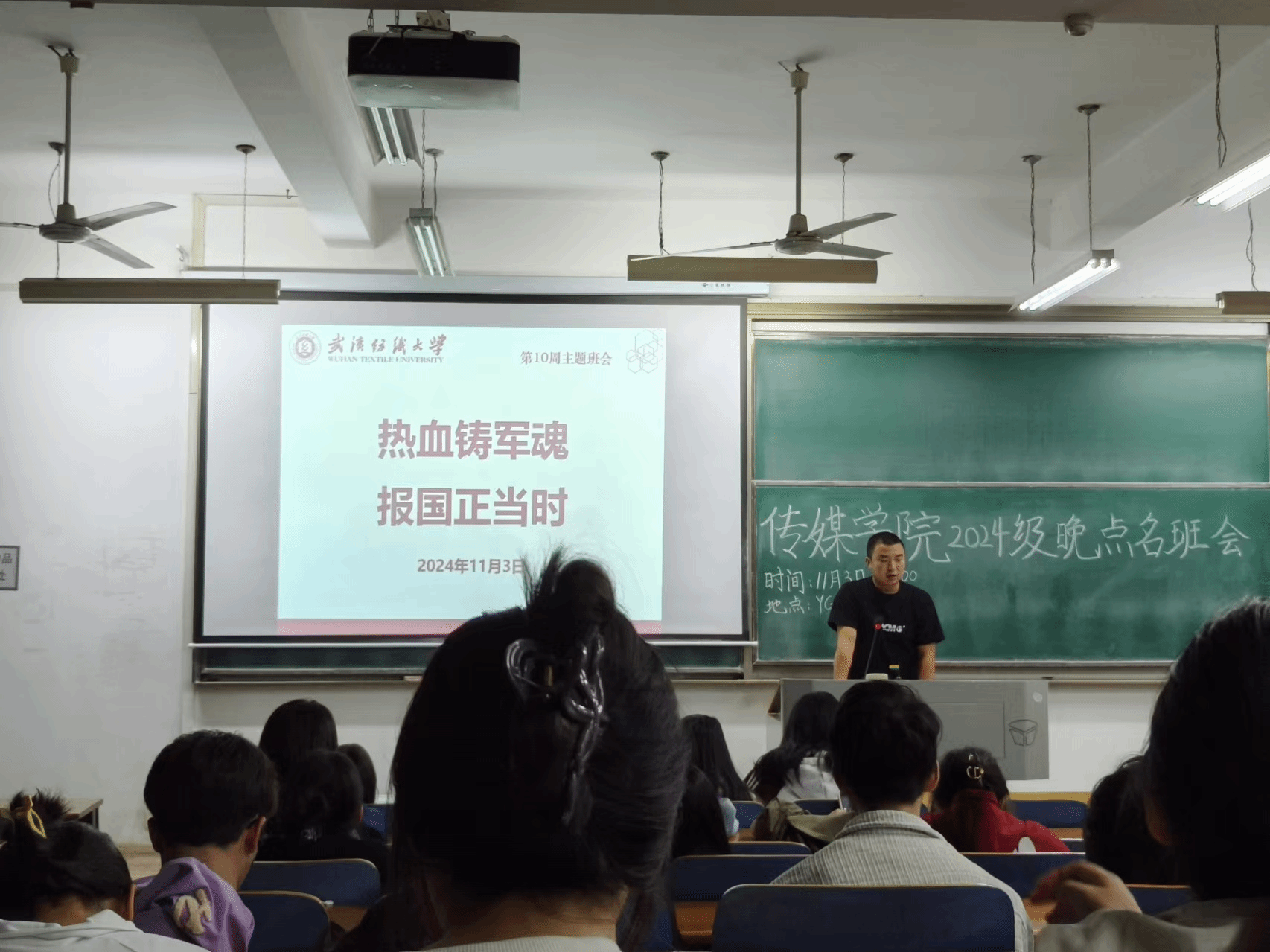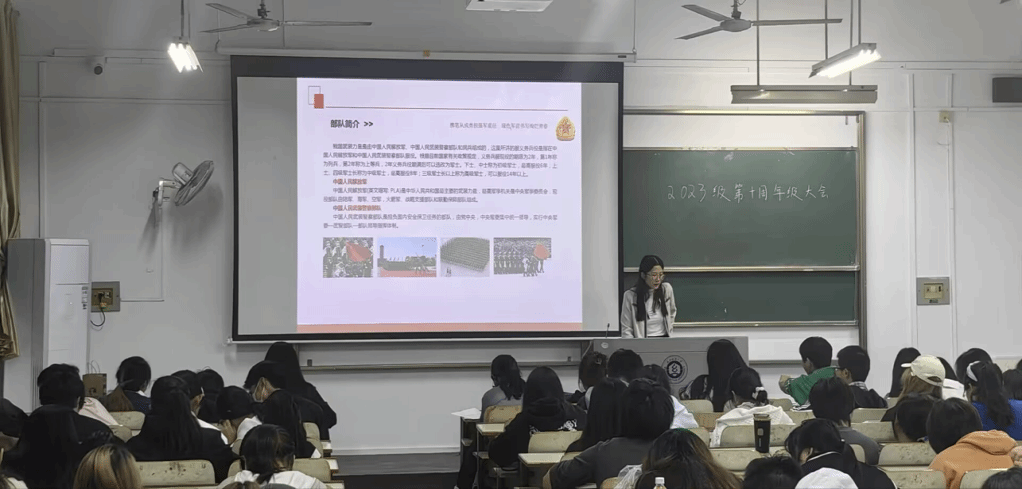 班会上,辅导员老师向同学们介绍了征兵政策,详细讲解了部队生活、征兵条件、入伍流程等,从报名登记到体检、政审等环节,逐一进行说明,让同学们对整个过程有了清晰的把握。在参军优惠政策方面,老师们详细介绍了学费补偿、升学优待、就业扶持等方面的优惠政策,让同学们切实感受到国家对军人的关怀和支持。入伍是每个公民的义务和责任,也是个人成长的重要途径。老师鼓励同学们积极响应国家号召,投身军营,为祖国的繁荣昌盛贡献自己的力量。