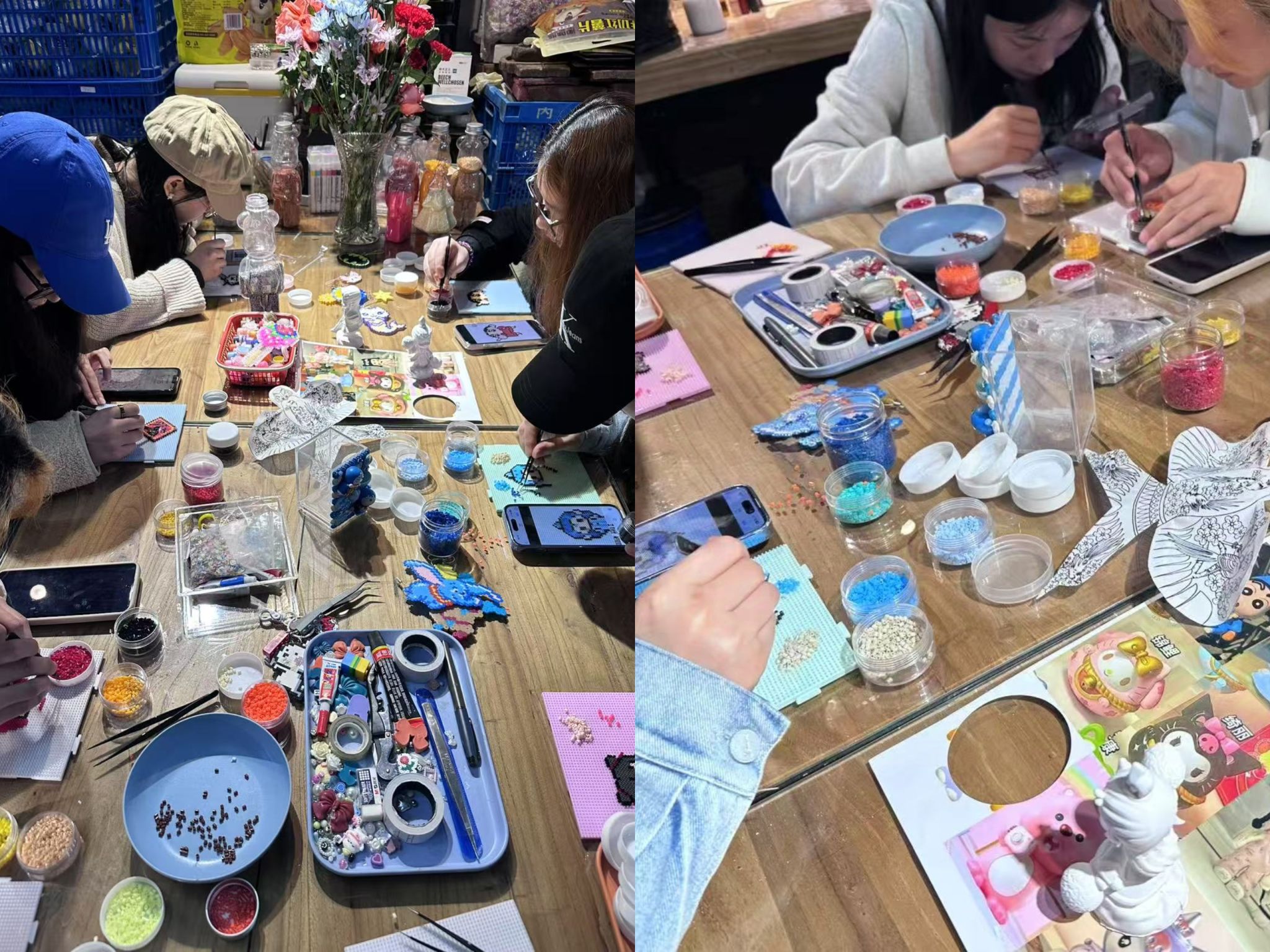 在创意拼豆体验区,彩色塑料颗粒变身为手中的创作素材。这些掌心大小的作品经热熨定型后,被制作成钥匙扣赠予创作者,成为随身携带的美好“小确幸”。石膏彩绘区同样人气高涨,员工们在素胚上绘制传统纹样,细细的笔触实现从指尖到心间的友好循环,栩栩如生的作品,不仅描绘了心灵春天的故事,也是对新学期生活的期许与期盼。