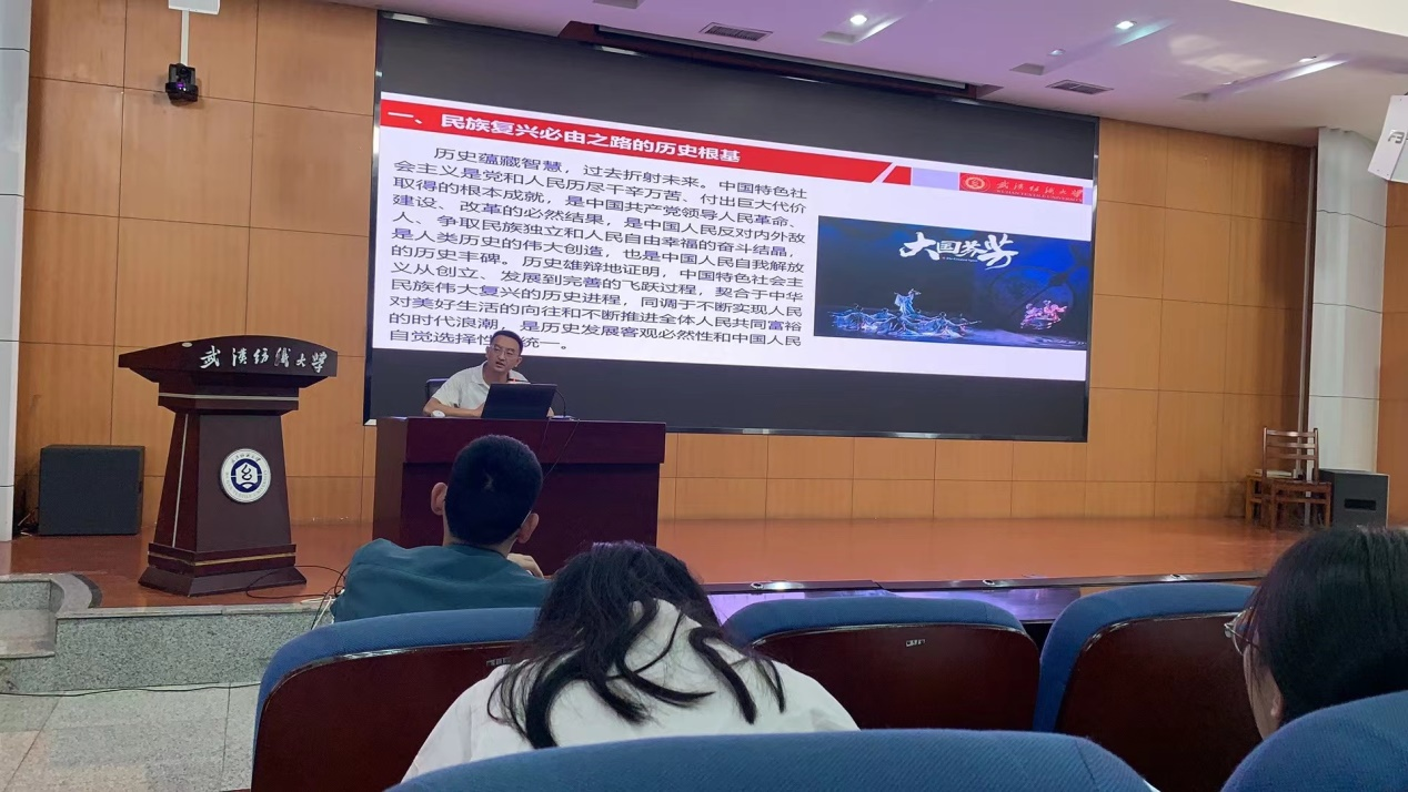 本次党课的主题是《中国特色社会主义是实现中华民族伟大复兴的必由之路》,汪书路首先向大家讲述了习近平总书记提出的“五个必由之路”,随后通过丰富详实的事例展示、生动严谨的语言描述、结合自身的经验与体会,从“民族复兴必由之路的历史根基”、“民族复兴必由之路的理论依据”、“民族复兴必由之路的实践基础”三个方面讲解了中国为什么选择了社会主义,中国的社会主义又是如何在曲折中发展的。