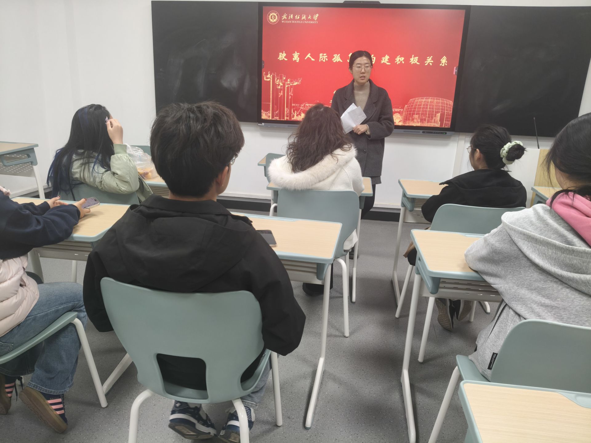 王思媛围绕“如何识别人际困扰信号”“实用沟通技巧实操”“积极关系构建方法”展开,既有理论讲解,更注重实践互动。在 “识别信号”环节,她细致解读“社交频率骤降”“情绪持续低落”“回避集体活动”等6类人际困扰典型现象;在“沟通技巧”模块,重点讲解“非暴力沟通四步法”(观察--感受--需要--请求),心理委员现场模拟“同学因合作失误产生争执”“室友作息矛盾”等场景,通过角色扮演实践沟通技巧,不少心理委员表示“原来换一种表达方式,矛盾化解会这么顺利”;在“关系构建”环节,她深入解析构建“三层支持网络”——以“班级好友圈”为基础层、“心理委员帮扶”为中间层、“专业心理咨询”为支撑层,指导心理委员如何搭建班级积极人际网络,帮助有需要的同学逐步“驶离孤岛”。