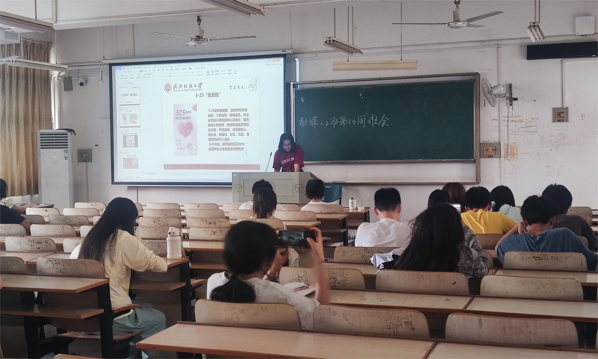 班会伊始,各年级辅导员、班主任以“5·25”全国老员工心理健康日切入点,引导员工关注自己的心理健康和心灵成长,提高自身心理素质,进而爱别人,爱社会。紧接着,老师与同学们分享了本次5月“我爱我”系列活动信息,动员同学们积极参与,切实培育健康心态,积极提升心理素养。最后,就老员工心理问题解决方法与人生价值取向导航提出切实建议,具体包括自我心理关照、拥抱压力、心理充能等。