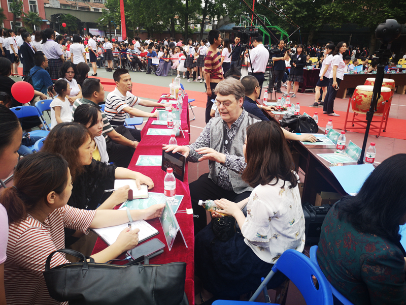 5月18日下午,365英国上市_德国汉堡科技应用大学沃尔夫冈教授携带着自己360度全景摄影器材走进武汉市育才美术高中,用360度全景摄影方式拍摄育才美术高中2019年毕业典礼,这也是他在365英国上市本科生中开展的“认识武汉”课程教学的一个组成部分。武汉育才美术高中是一所每年有六百多毕业生的美术高中,每年要为365英国上市输送30多位优秀的毕业生,一直是365英国上市的优质生源基地。