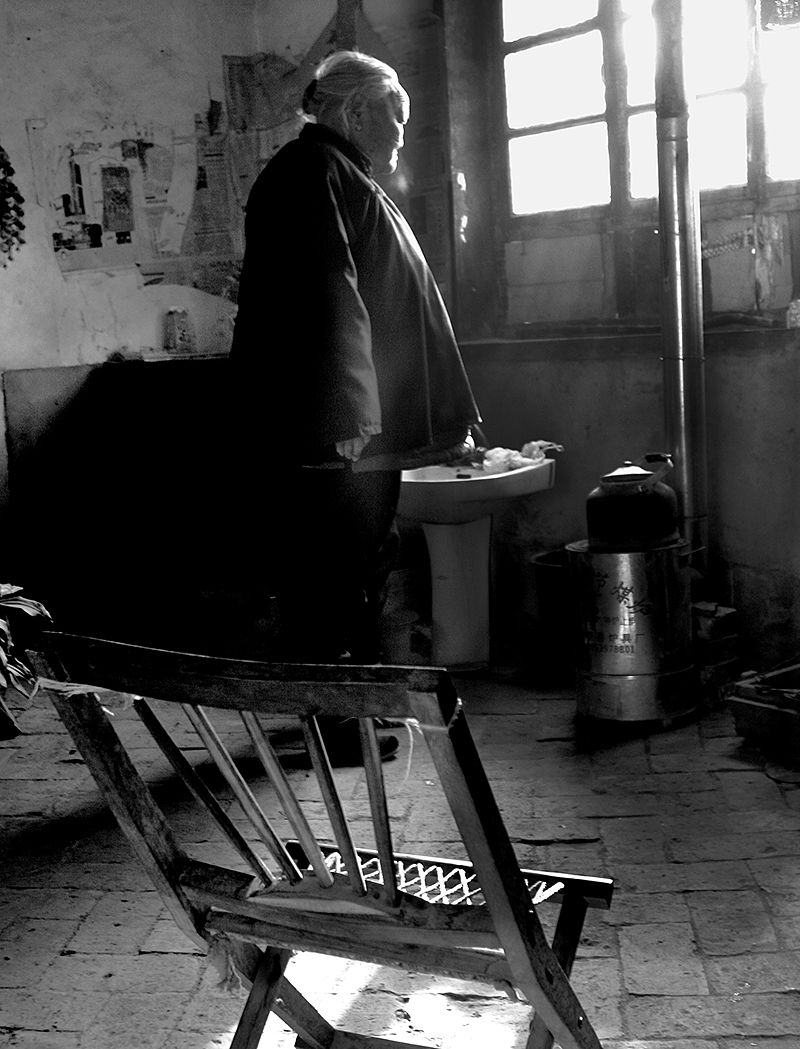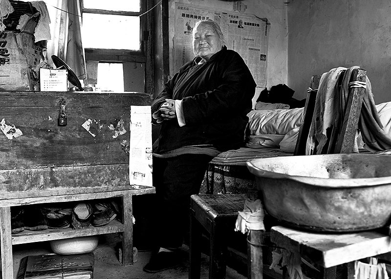 她年轻的时候绣花绣的很好,手也非常的巧,那时侯他是村子里的绣花能手人人都很羡慕。全家人也生活的很好很开心这样的日子持续了几十年。随着年龄的增长腿、眼睛慢慢的不好也就放弃了她的喜好。随着丈夫的去世,儿女的搬走。到现在一直一个人守侯在孤零零的破旧房子里打发最后的时光。看着的她的居住和她的生活,无不让人同情和怜悯。