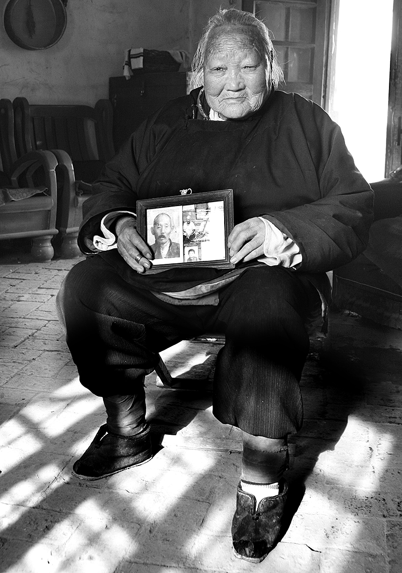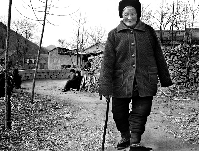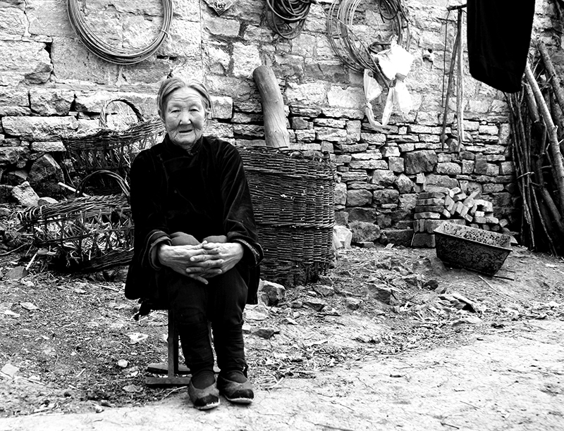 张道英,81岁,9岁时就裹脚,17岁出嫁。在那个特殊的年代里张道英说:小姑娘都要裹脚,不裹的话就嫁不出去,邻居也会说闲话的。再那个封建社会里这是没办法的事只有服从的份。出嫁时也不知道自己的新郎官是什么样子,洞房花烛夜当新郎官掀起自己的盖头时才知道自己的丈夫原来是一个瘸子。日子就这样过着,虽然自己并不情愿嫁给这样的人,可在那时侯是没办法的事。一年后她的娃子永顺来到了这个世界,无疑这给张道英带来了无限的希望。几乎每个集市张道英都会用她的小脚走到15里地的集市去,卖掉她平时在家织的布换点小钱,补贴家用。就这样他的二儿`三姑娘`小女儿相继出生了。。丈夫与7年前离开了人世,因为大儿子在本村是位老师,所以和张道英一直住在农村 。让张道英安慰的是儿媳妇孝顺,从不难为自己。儿女们也知道老人一辈子不容易,虽住城里可每个月都回去看望老人家。