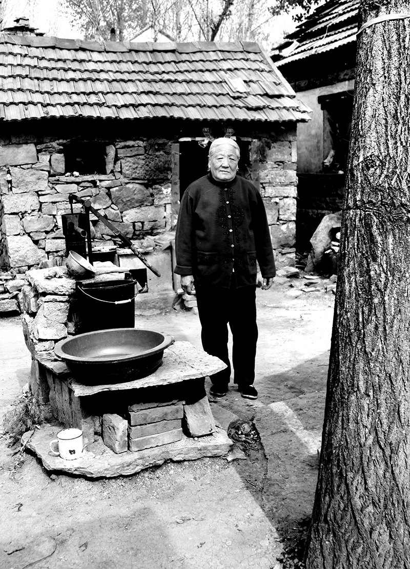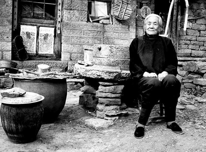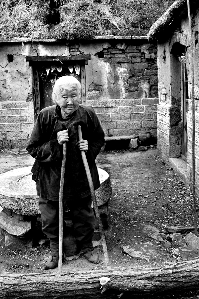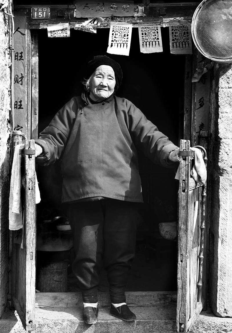 赵严玲, 90岁,7岁时裹脚,15岁出嫁。生有两男一女。25年前丈夫去世,现在在儿子家住和儿子、儿媳共同生活在一个院子里,过的很幸福自在。身体也很健康生活也清闲。她还是很有福气的,不仅长寿而且儿孙满堂,也是四世同堂的一家之主。