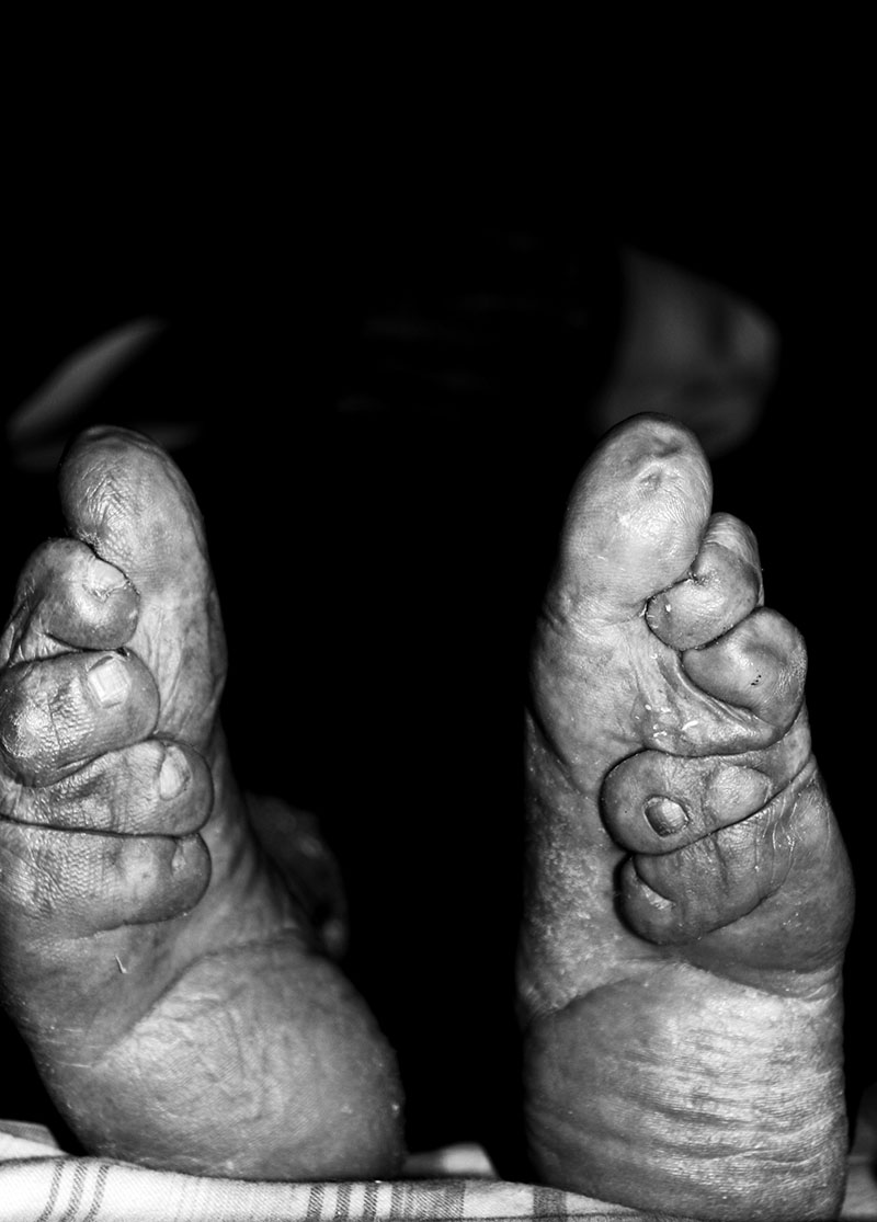 夏秀莹,88岁,8岁时开始裹脚,12岁时出嫁,生有三女两男,丈夫20年前去世。由于腿脚不好,很难走路,所以基本上不出门。由于儿女一直都在外地,基本上不回来看她,几年才一次,没有照顾也做不了饭,都是靠邻居的施舍,赠送一点饭每天维持生活。这样的日子从10年前一直到现在,她是村子里老人中最可怜的一个。说起裹脚她更是生不如死,骨头缠断了,每天都缠着布,每天都要换,并且每换一次都比原来的紧,一天都哭好几次,疼痛的都不能睡觉那时侯,因此她的脚缠的很小,差不多一年都没能走路...
