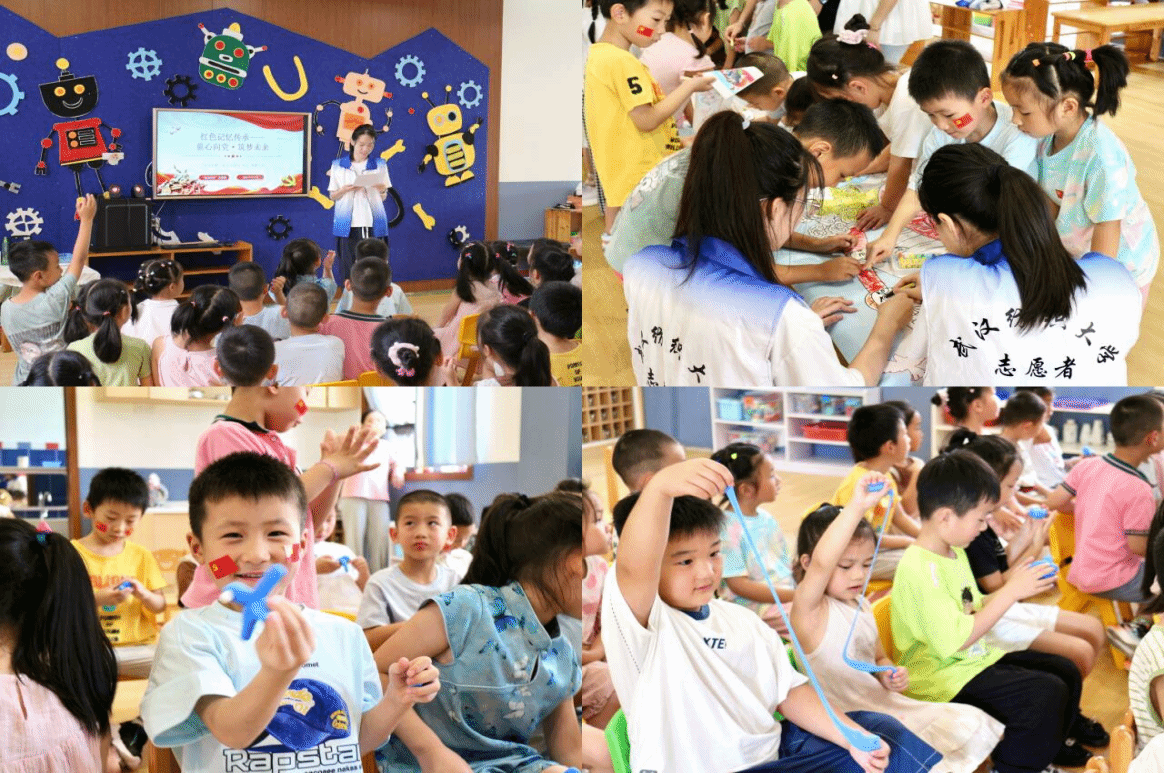 在面向社区儿童开展的“红色童趣乐园”活动中,实践团以寓教于乐的形式,精心组织了红色知识普及、主题绘画创作及军事趣味手工游戏等一系列兼具趣味性与教育意义的活动。孩子们在轻松愉悦的氛围中,近距离感受着红色文化的独特魅力。在同学们耐心细致的指导下,孩子们用画笔勾勒出心中对红色文化的理解与向往,通过亲手制作手工品深化对红色精神的体会。一颗颗红色的种子,就这样在孩子们幼小的心灵中悄然扎根、萌芽。