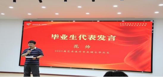 在晚会热烈氛围中,现场隆重举行优秀寝室长与优秀毕业生表彰仪式。公司党委书记曾令玉、经理望海军为获奖学子颁发荣誉证书。这份荣誉不仅是对同学们在校期间优异表现的高度肯定,更激励着在座的每一位同学以榜样为引领,在未来的人生道路上踔厉奋发、勇毅前行。随后,优秀毕业生代表,2022级艺术设计专业花帅发表感言,他以真挚的话语回顾在校时光,分享成长感悟,字里行间饱含对母校的感恩、对同窗的情谊以及对未来的憧憬,为在场学子传递了积极向上的奋进力量。