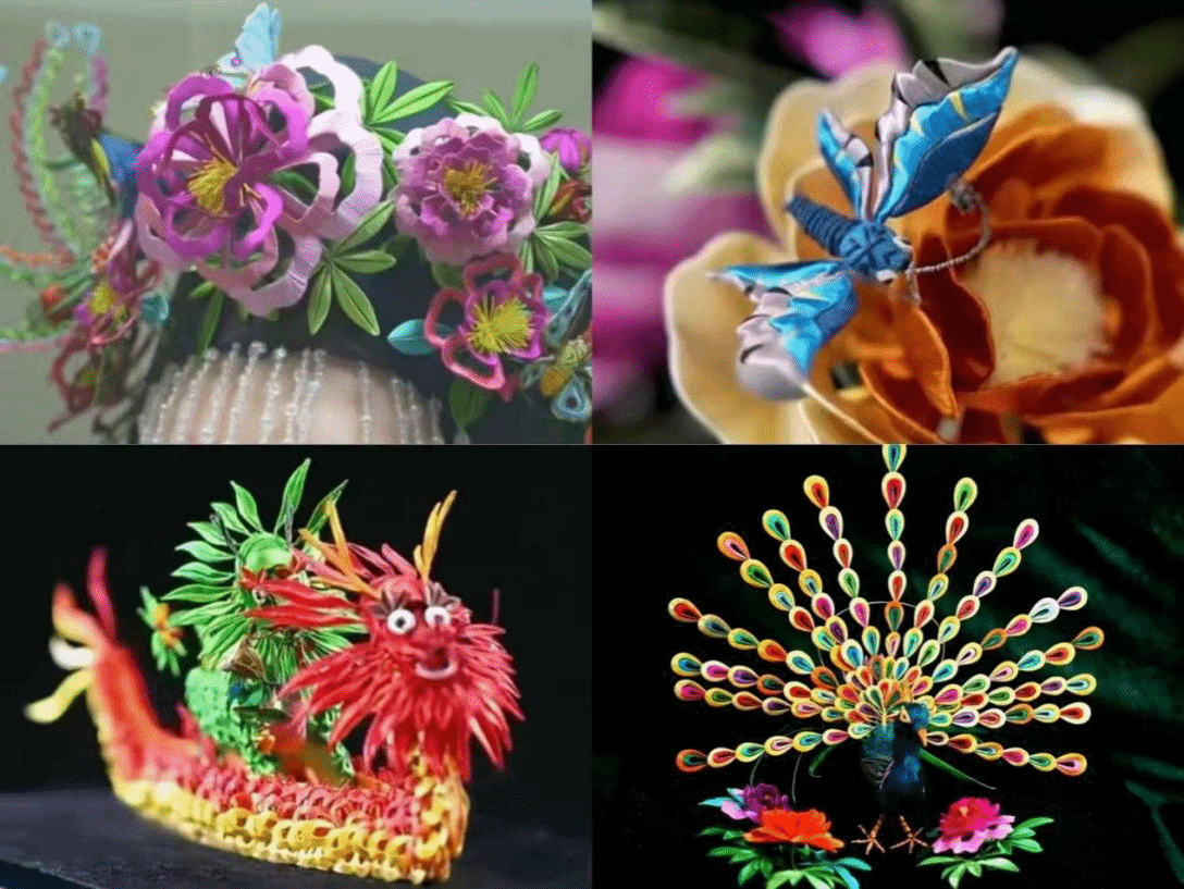 实践活动聚焦“技艺溯源”和“传承现状”两大方向深入推进。在英山缠花非遗传承基地,队员们参观了陈列室中做工精细的缠花作品,国家级代表性传承人陈广英系统介绍了这门始于明代、盛于清代的手工艺——以天然蚕丝自染丝线在铜丝坯架上缠绕造型,题材涵盖花鸟虫鱼等,每道工序都需极高技艺,生动展现“以针为笔,以线为墨”的独特魅力。