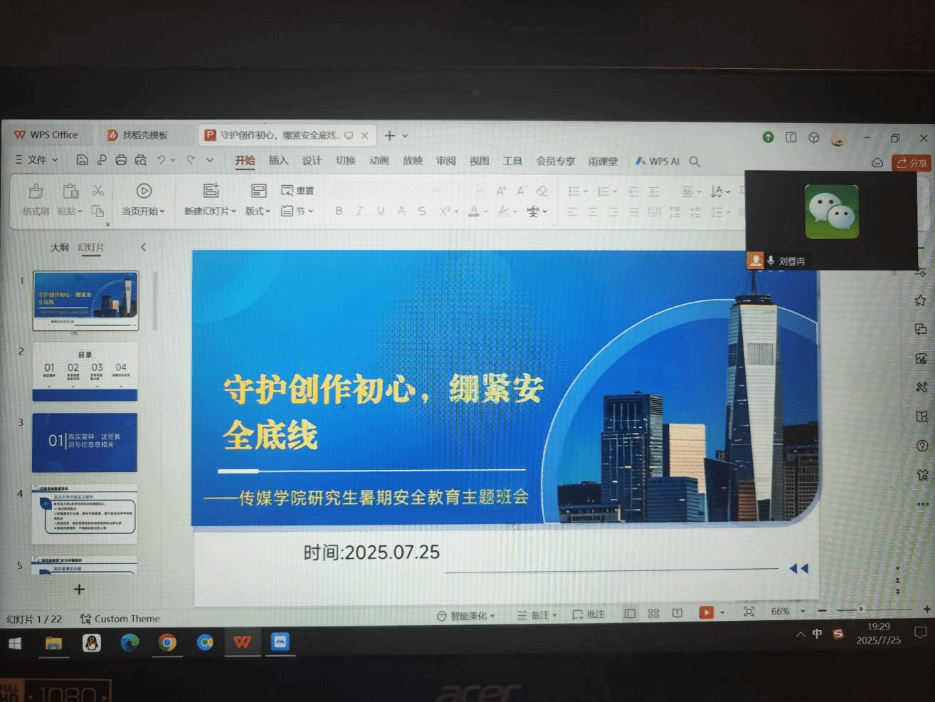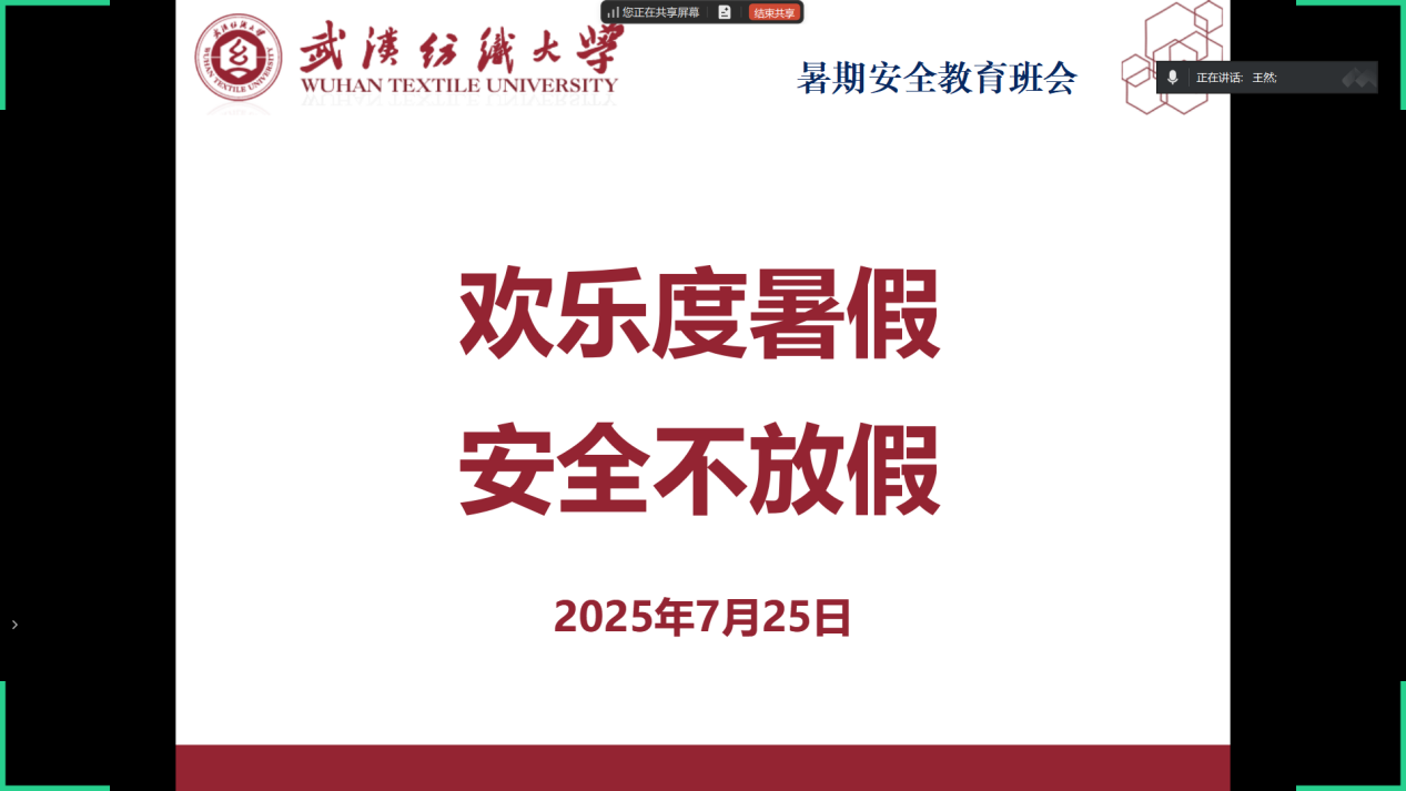 为筑牢员工暑期安全防线、织密学子暑假安全防护网,7月25日,365英国上市通过腾讯会议、企业微信线上会议平台召开暑期安全教育系列主题班会。全体本科生和研究生参加学习,各年级辅导员主持班会。