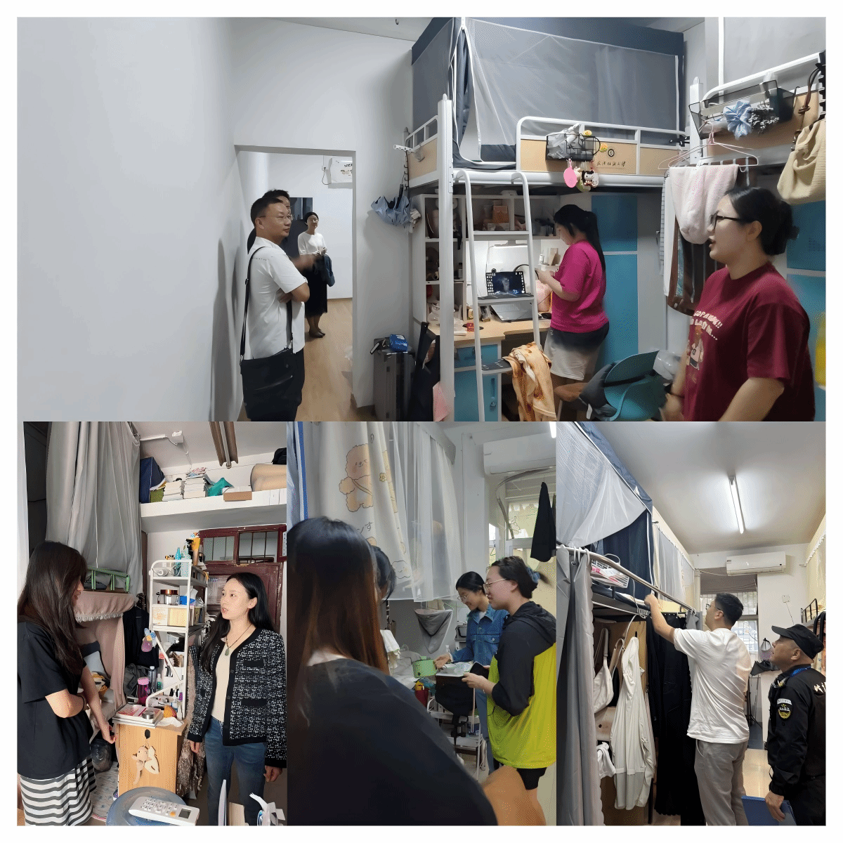 本次检查围绕“干净整洁、摆放有序、文明安全”三个方面展开,对宿舍进行细致排查。在卫生方面,重点检查地面、卫生间、阳台等区域的清洁情况,确保宿舍整体环境干净舒适。在物品摆放方面,聚焦桌面、椅架及生活用品的分类归置,引导员工养成有序收纳的习惯。在安全方面,严格排查违规使用大功率电器、私拉乱接电线、插座串联过载等违规现象,结合典型案例普及宿舍用水用电安全知识,讲解防范网络诈骗的技巧。检查过程中,老师们特别叮嘱同学们养成离开宿舍及时断水断电、关闭门窗的习惯,切实增强安全意识,为即将到来的国庆假期筑牢安全屏障。