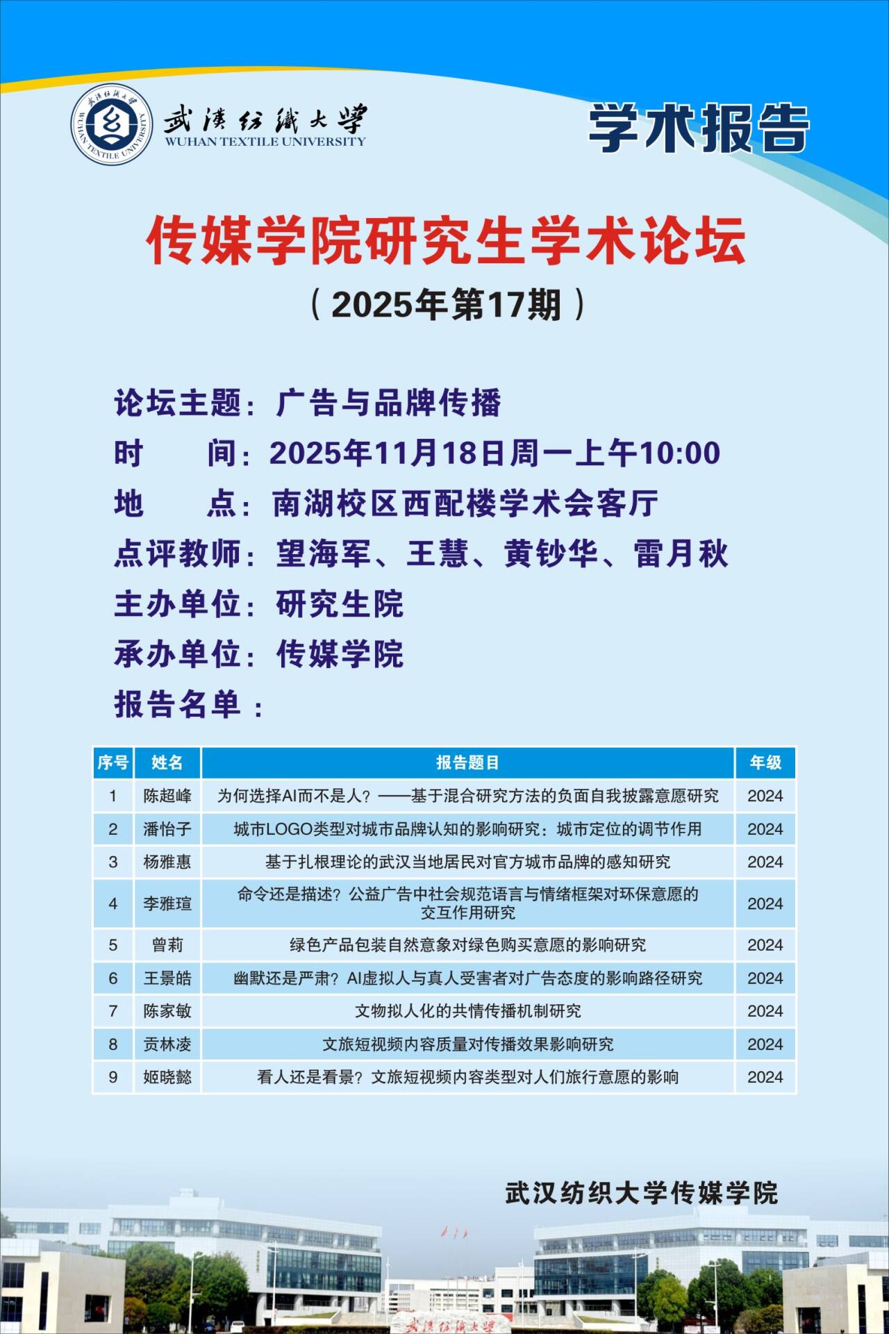 杨雅惠同学基于扎根理论,聚焦武汉官方城市品牌认知,探讨不同身份群体居民对城市品牌的感知特征及其内在作用机制。结合城市想象理论与包容性品牌理论,构建了 “城市品牌叙事 — 民生需求过滤机制 — 居民品牌态度” 的影响模型。揭示民生需求在居民品牌认知中的核心过滤作用,为超大城市品牌传播从 “官方主导” 向 “居民参与” 转型提供理论支撑与实践参考。