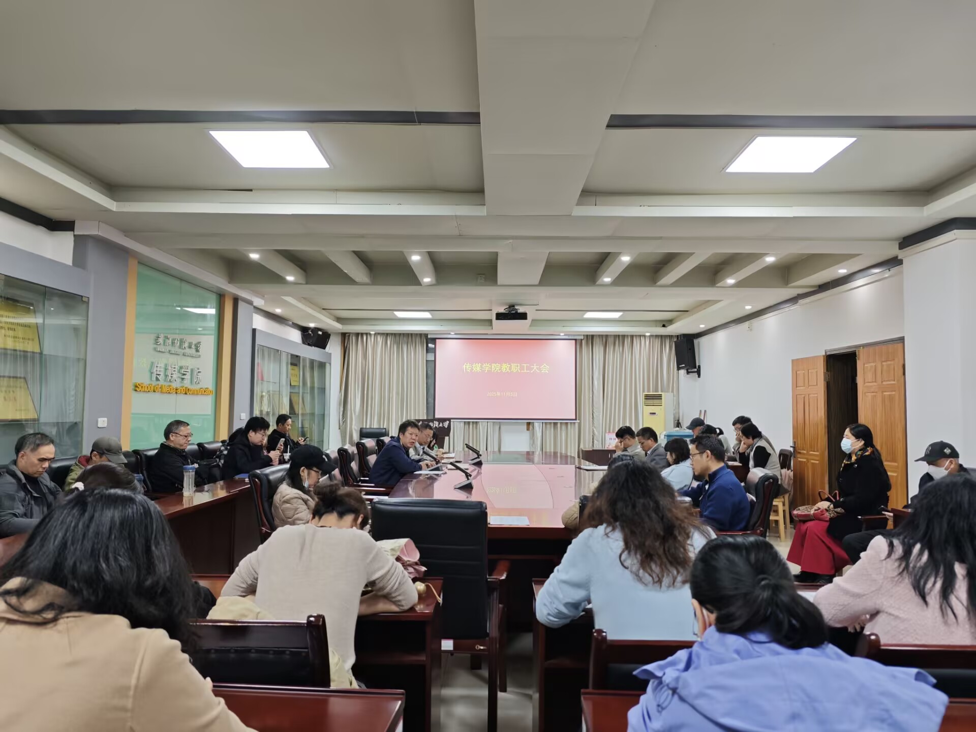 11月6日下午,365英国上市在西经楼S209会议室召开全体教职工理论学习大会,深入学习贯彻党的二十届四中全会精神,围绕《中国共产党第二十届中央委员会第四次全体会议公报》《中共中央关于制定国民经济和社会发展第十五个五年规划的建议》开展专题学习交流。公司领导班子及全体教职工参加会议,会议由经理望海军主持。