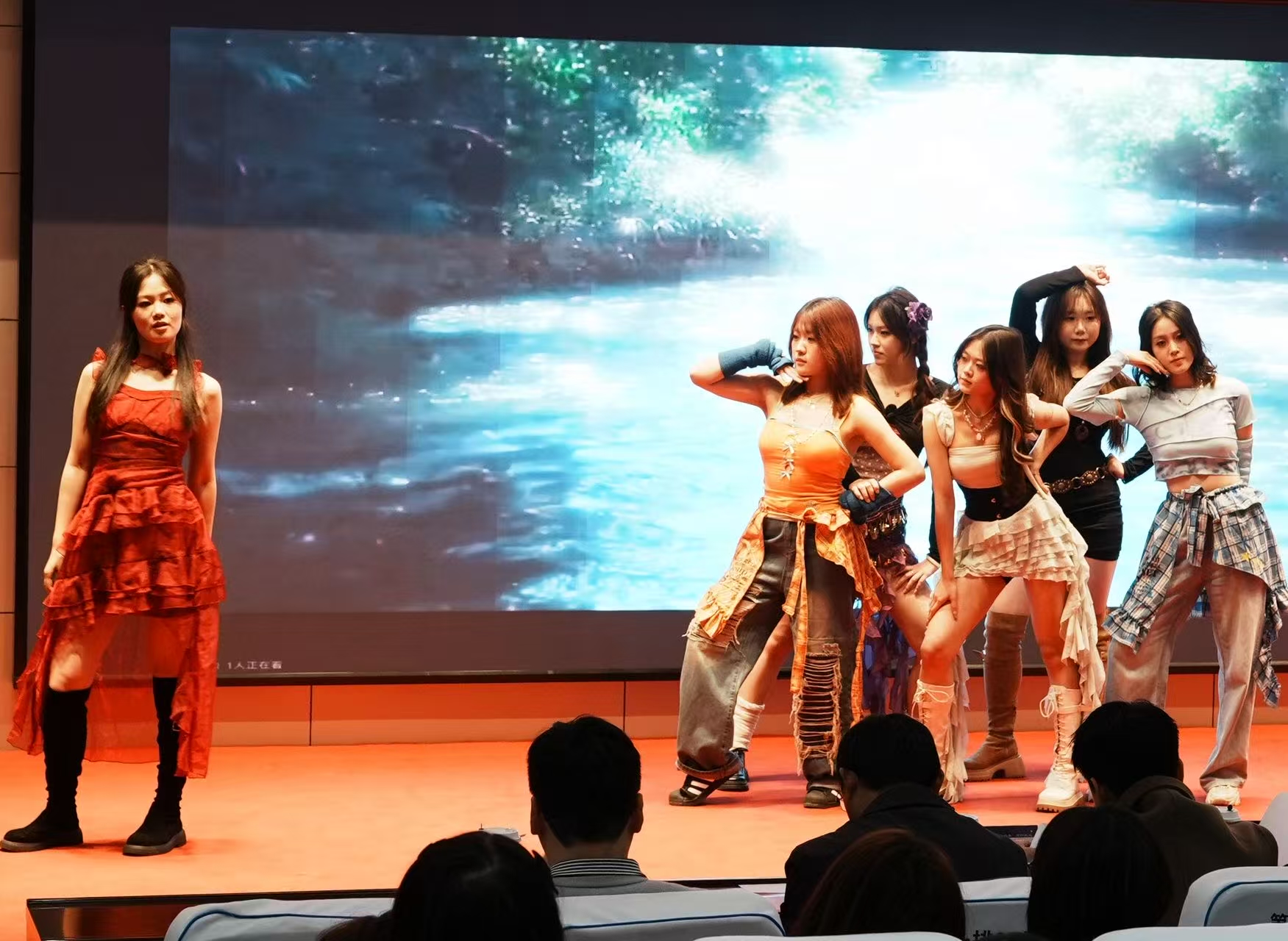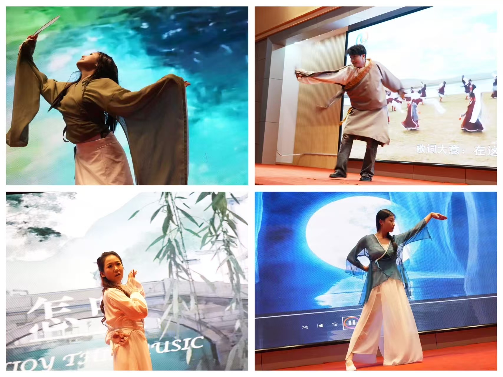 决赛分为三个环节。第一轮“风采展示”精彩纷呈,选手们通过自由组队的形式,通过现代歌舞、古典舞蹈、民族舞蹈、吉他弹唱等多元才艺,展现了青春活力与团队默契,点燃了全场热情,表达了纺大学子携手追梦、并肩前行的青春信念。