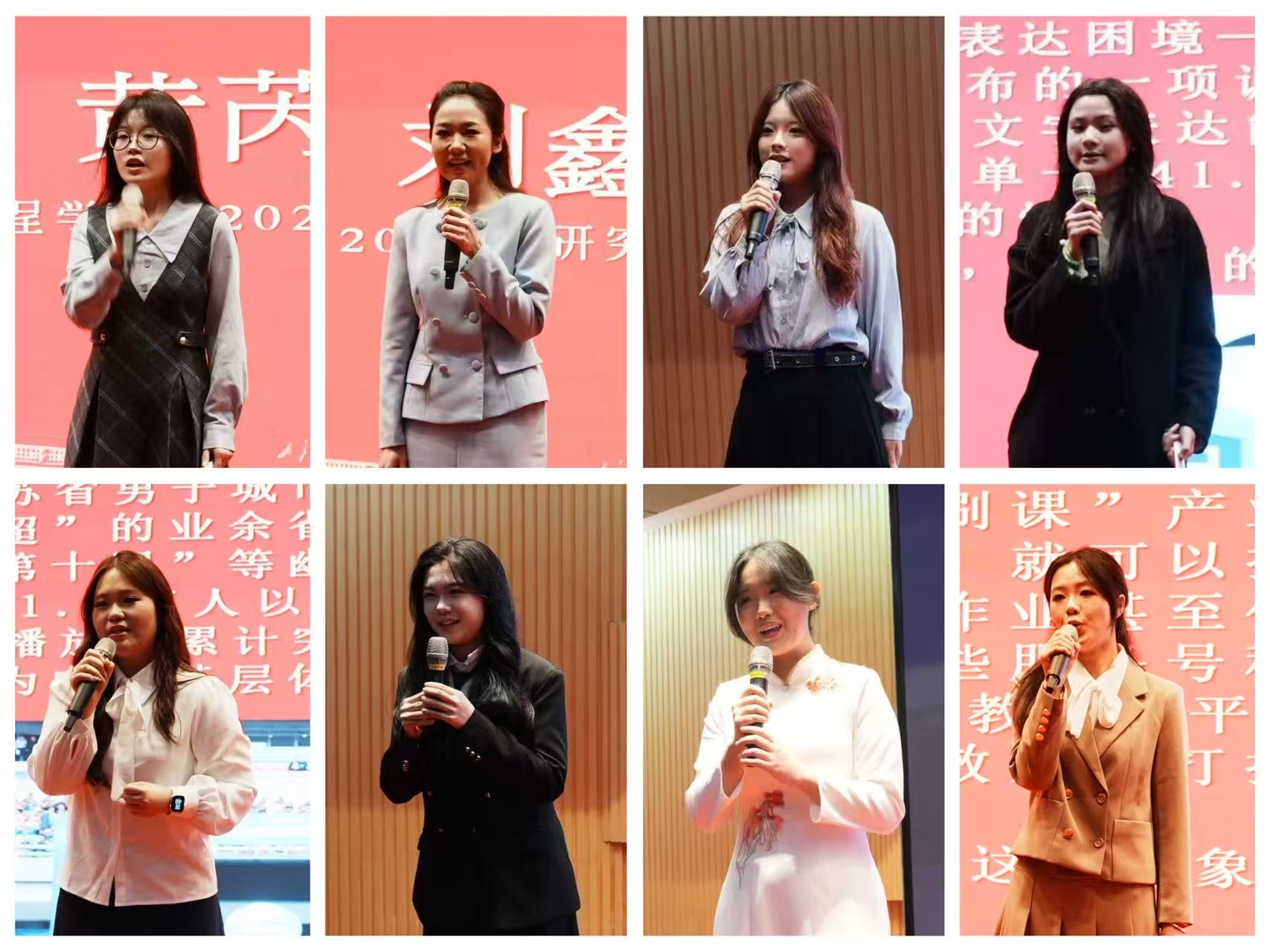 第二轮“自备主持”环节,选手们以真挚的语言讲述“我眼中的纺大”,抒发对公司的深情,引发观众共鸣。王梓懿以细腻笔触描摹校园景致,熔铸自然之美与人文底蕴;李风荷巧联校园建筑与黄道婆纺织文脉,让传统纺织精神焕发新生;洪淑涵袒露独家校园记忆,真情流露引得满场动容;黄芮茜借实验室机器变迁解读学科传承;杨超杰、江欣灿立足专业特色,尽显公司别样风彩。