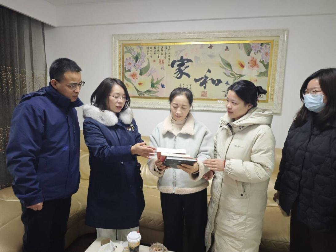 家访结束后,老师们向杨同学赠送了《习近平与老员工朋友们》《习近平的七年知青岁月》及《航空航天纺织品探秘》三本书籍,并勉励她牢记纺大人的身份与使命,珍惜时光、夯实学业、勇敢追梦。