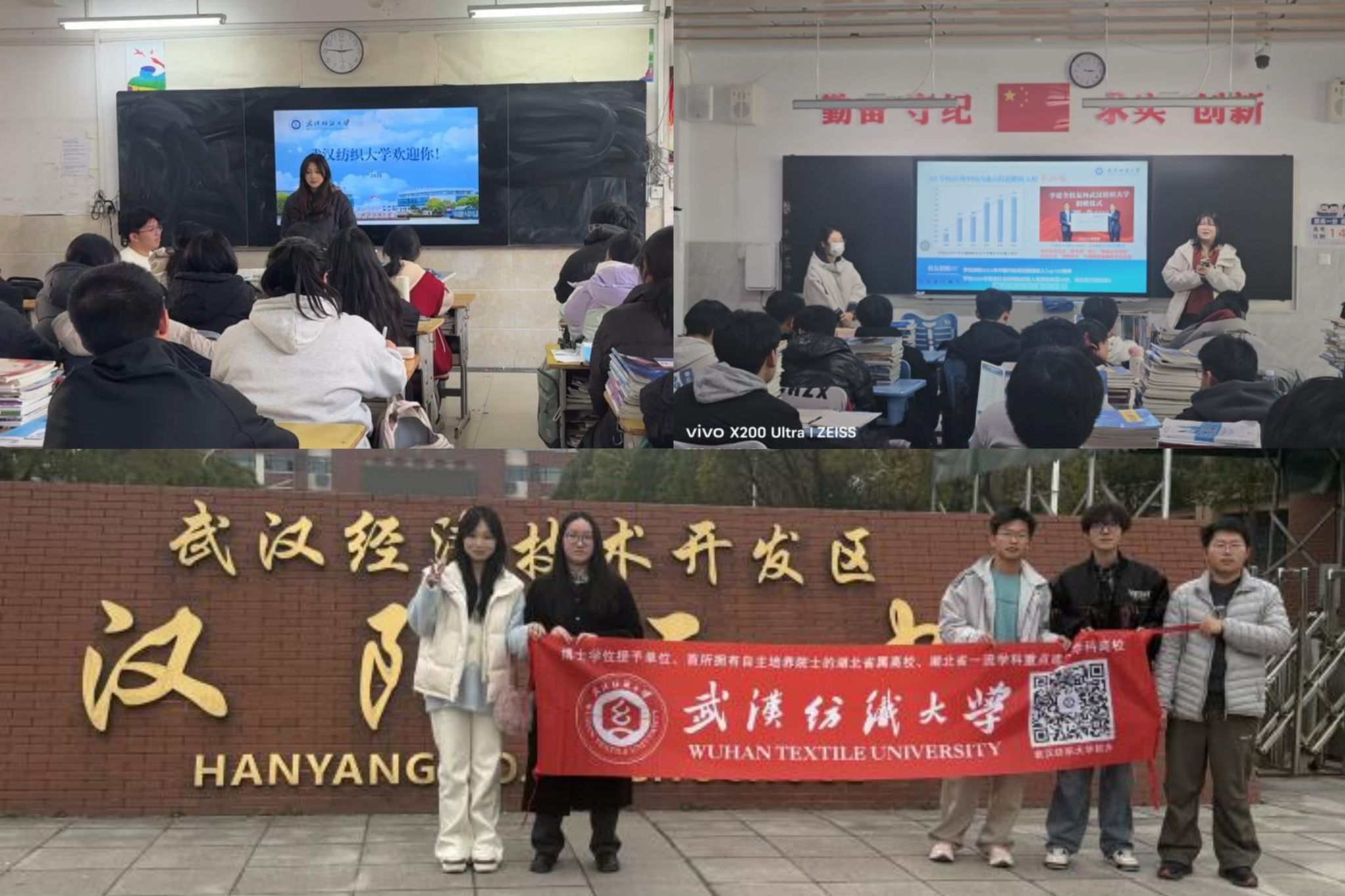 容宇琪团队进入武汉育才美术高中宣讲,重点解读集团学科发展情况、保研资格等核心优势,分享高考备考经验并组建“纺美同源护航备考营”QQ群,持续推送300-400份备考资料与招生资讯;卢慧团队进入武汉市关山中学宣讲,详细解读投档分数线与专业分数要求,结合自身经历拆解志愿填报技巧;高婉瑜团队进入武汉长虹中学宣讲,融合校史底蕴与王牌专业特色宣讲,发放定制纪念品并搭建线上咨询群;刘照晗团队进入经开汉阳三中宣讲针对宣讲前发放的调查问卷针对性地开展答疑解惑,为学弟学妹明晰升学方向。