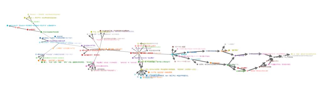 在与学术界已有丰硕成果对话的基础之上,员工团队进入了文献分析处理环节。多方面、多角度收集史料,引入跨学科研究视角,用多元研究方法对待历史,并呈现出较好的逻辑性,为进行可视化呈现做好资料和数据的预处理。在走进作品之前,有几个有趣的关键词可以吸引住大家的眼球:网络和面向语义的知识表示。