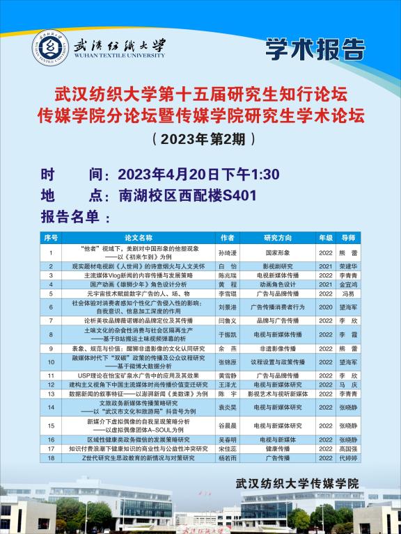 参加本次论坛共有16名研究生,他们的论文选题涵盖元宇宙技术、热点文学评论、传播语言的叙事特征、影视与文化、广告与品牌传播、国家形象建构、动画角色设计等几个方面。参会研究生围绕选题背景、选题意义、研究方法、研究内容以及与研究结论,结合各自的专业领域积极发言。