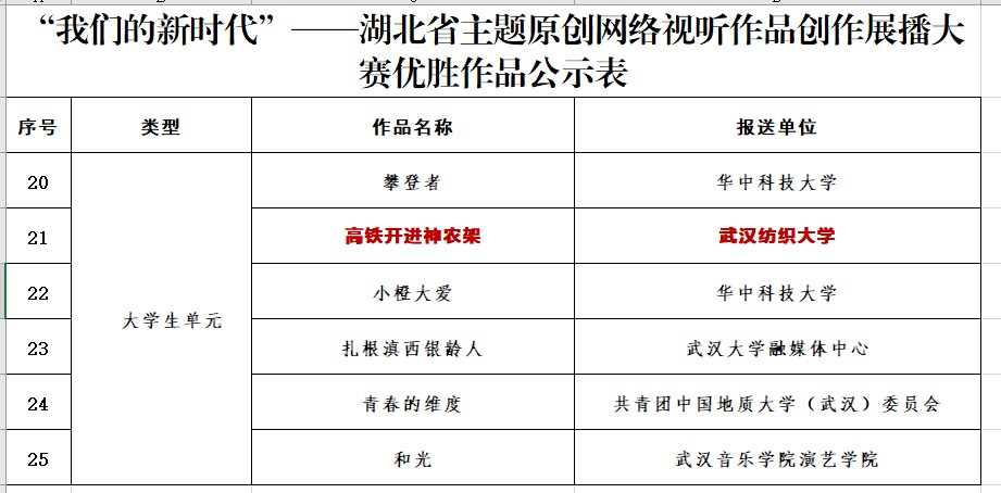本次大赛也是湖北省年度最权威的网络视听作品比赛,共有6所高校在本次比赛中获奖,公司《高铁开进神农架》作品收获殊荣。