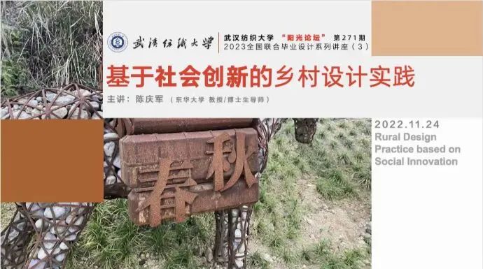 陈教授从“乡村设计是什么?”引入,提出乡村设计不只是规划,建筑和景观、乡村设计不只是艺术介入、乡村设计不应是只谈乡村的观点。而后围绕设计对象的更新与放大、异质连接的创造力(驻村设计、设计小学)、让事情发生——联合毕设三个主题展开了本次演讲。