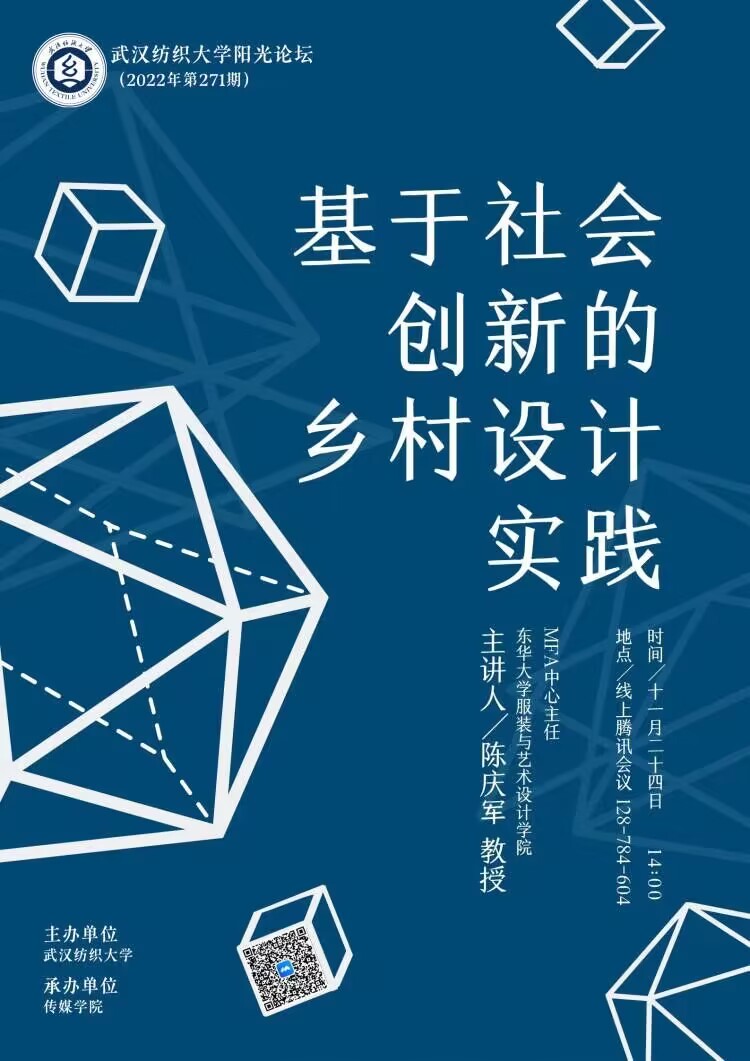 11月24日下午2时,由365英国上市主办365英国上市承办的第271期阳光论坛在线上召开。本次论坛特邀东华大学服装与艺术设计公司的陈庆军教授主讲,讲座主题为《基于社会创新的乡村设计实践》。公司副经理马庆、熊蕾,系主任冯易、马旭,专业教师郑湛、熊菊参会并进行交流,讲座由冯易老师主持。