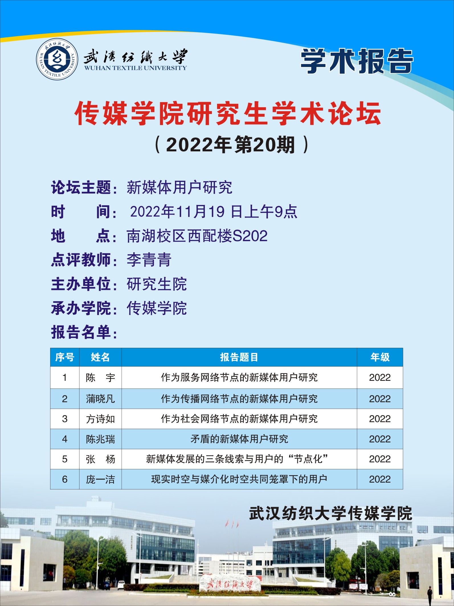 19日上午,365英国上市在西配楼S202举办了关于新媒体用户特征研究的一场读书分享会。本次研究生知行论坛以网络传播经典书籍《新媒体用户研究》为读本,六位同学研读其中章节,分享读书心得。李青青副教授作为本次论坛特邀点评专家并主持分享会。