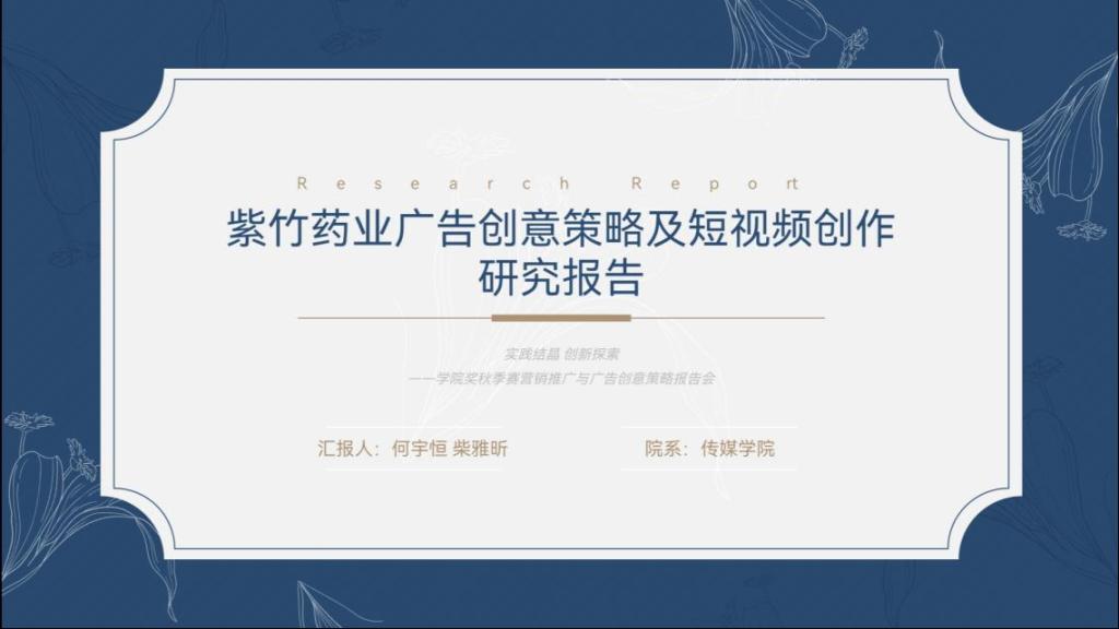 何宇恒和柴雅昕小组则以紫竹药业的蜂胶口腔膜为主题进行了短视频创作,本次论坛他们阐述的主题是《紫竹药业广告创意策略及短视频创作研究报告》。在报告中,他们对“‘膜’力去溃疡”的广告主题、快速愈合的产品调性进行了概述,通过对市场环境及产品的分析,总结了紫竹蜂胶口腔膜具有止痛快、促愈合、成分安全、舒适性好四大卖点。他们最终以老员工群体为主要目标消费群,以抖音为主要的媒体平台,选取了快速愈合这一卖点进行了短视频的创作。短视频的创作主要以意象表达的方式,阐明了辛辣油腻的食物会造成严重的口腔溃疡,而使用紫竹蜂胶口腔膜能快速促愈合,使得口腔更健康。
