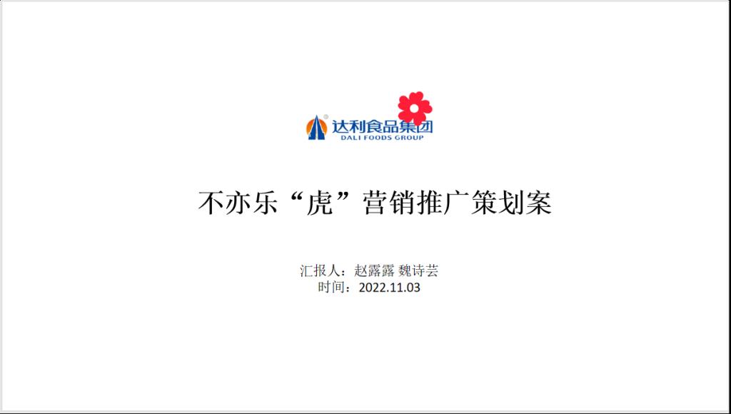 赵露露和魏诗芸小组以《达利不亦乐“虎”营销推广策划案》为题做了汇报。她首先对达利乐虎相关市场环境做了总结分析,在此基础上提出了乐虎的营销策略、创意设计以及媒介投放提案并在最后对广告费用做出了预算。她们认为由于乐虎目前具有较多的内部优势和外部挑战,企业更应该选用ST战略,抓住外部机遇,进而扩大品牌知名度,提高市场渗透率。通过STP策略定位,她们的营销以男老员工为主要目标受众,以“不亦乐‘虎’”为主题,开展了“乐”此不疲(运动)、无“乐”不欢(音乐)、吉时行“乐”(电竞)三个活动。通过这三个活动的进行,把乐虎与“乐”的概念紧密结合在一起,最终实现与目标消费者建立一种亲密关系。