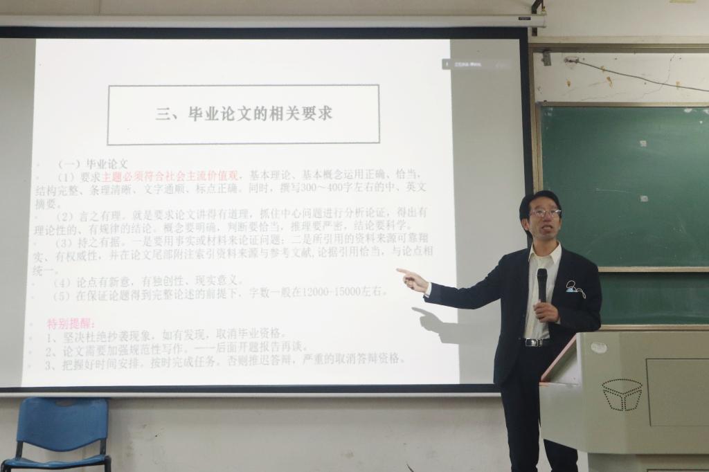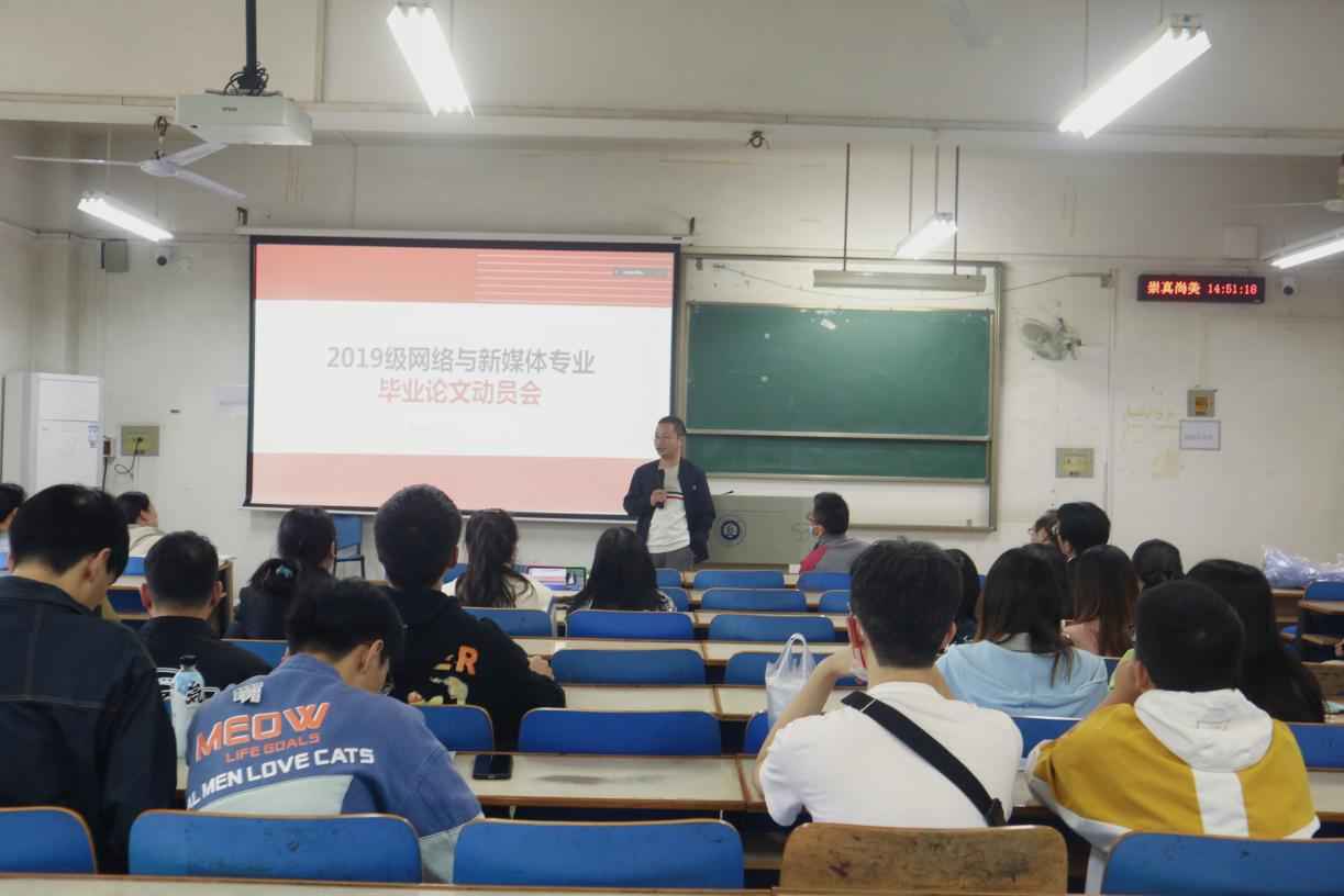 随后,马旭老师介绍了网络与新媒体系毕业论文指导教师团队,并强调了毕业论文各个环节的时间节点。