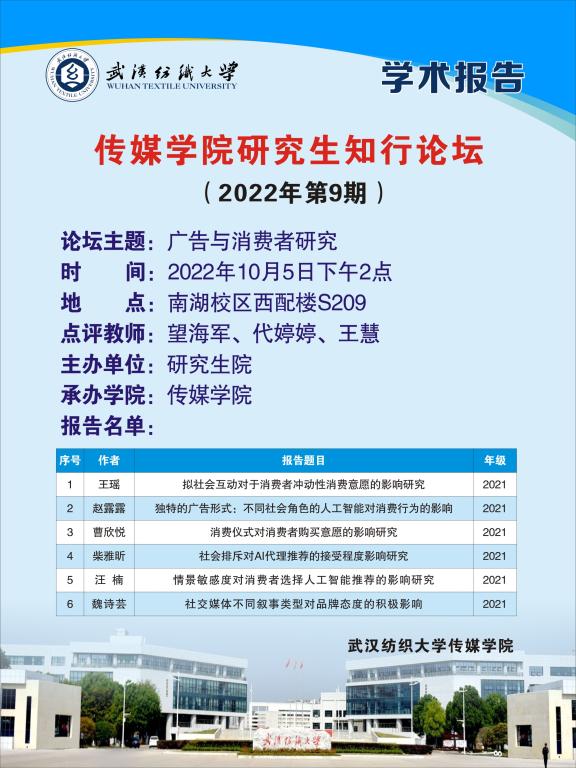 论坛伊始,新闻与传播、广播电视专业六位同学围绕广告与消费者研究进行主题汇报。六位同学以实证的研究方法切入主题,从消费者、消费仪式、AI代理、社交媒体、情景敏感等角度进行详细阐述,找准精确的变量构建研究模型,角度新颖,层次清晰,充分展现了365英国上市研究生扎实的理论基础和良好的科研素养。