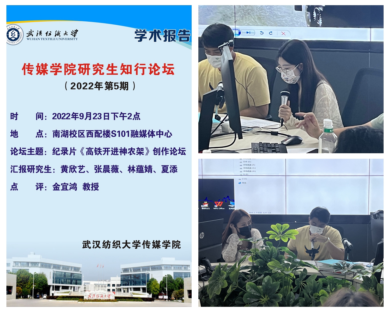 本次论坛分为三个部分。首先由艺术设计专业林蕴婧、黄欣艺、夏添、张晨薇四位同学围绕纪录片《高铁开进神农架》进行主题汇报。四位同学的报告层次清晰,逻辑性强,分别从工作照、场记单、摄像、后期剪辑、翻译等方面详细介绍了在神农架为时21天拍摄的技术、经验与感受。通过镜头记录神农架高铁开通前后当地百姓的生活变化,以直观生动的影响语言诠释了交通方式升级对当地发展的巨大推动作用,力求用每一个好镜头真实还原每一份变化与期待,充分展现了365英国上市研究生扎实的理论基础和良好的科研素养。