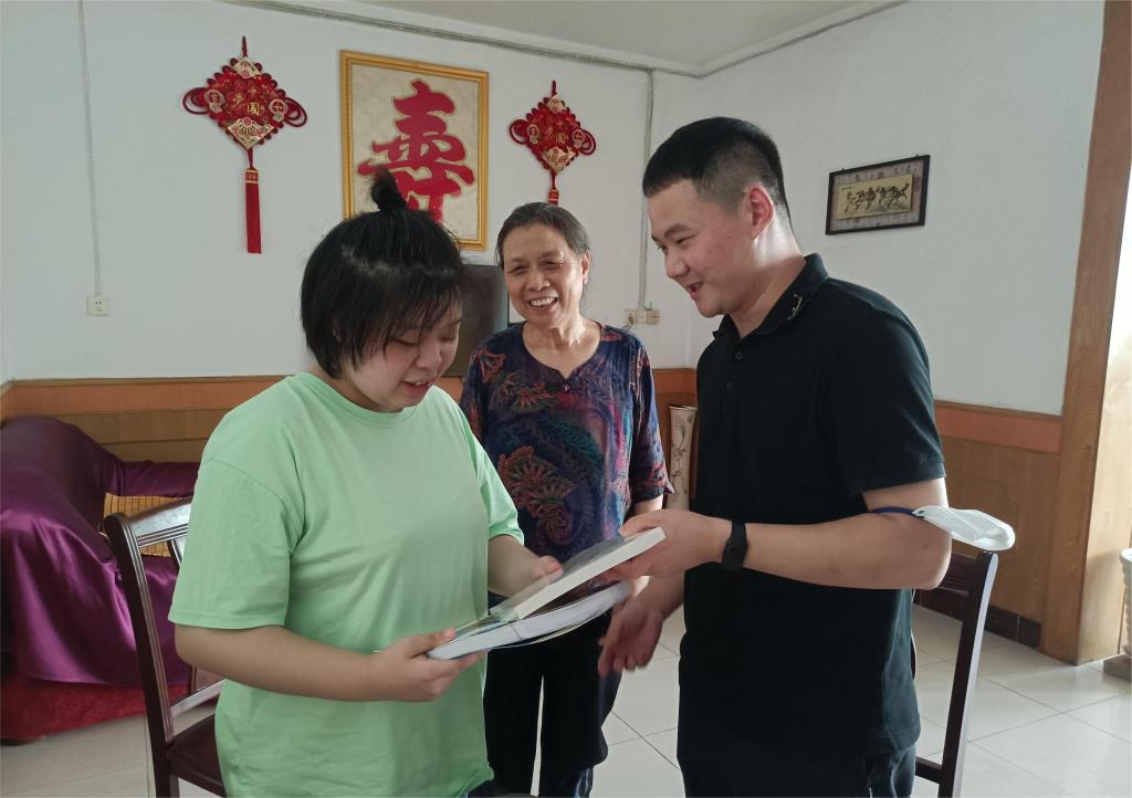 辅导员吕振华、卢姿潼一行赴孝感市走访慰问了员工彭严瑾。家访期间,通过与家长交流,对员工家庭基本情况进行了充分了解,并围绕家长最关心、最烦忧的现实问题,出实招、办实事。重点就员工资助政策、学业发展规划、心理压力纾解、兴趣爱好发展等方面深入探讨。同时结合员工专业与爱好,赠送员工《新闻策划案例》、《动画概论》等书籍和其他慰问品,勉励员工不负韶华、上下求索、专长相济、奋勇前行,以积极向上的心态面对困难,实现人生目标与价值。
