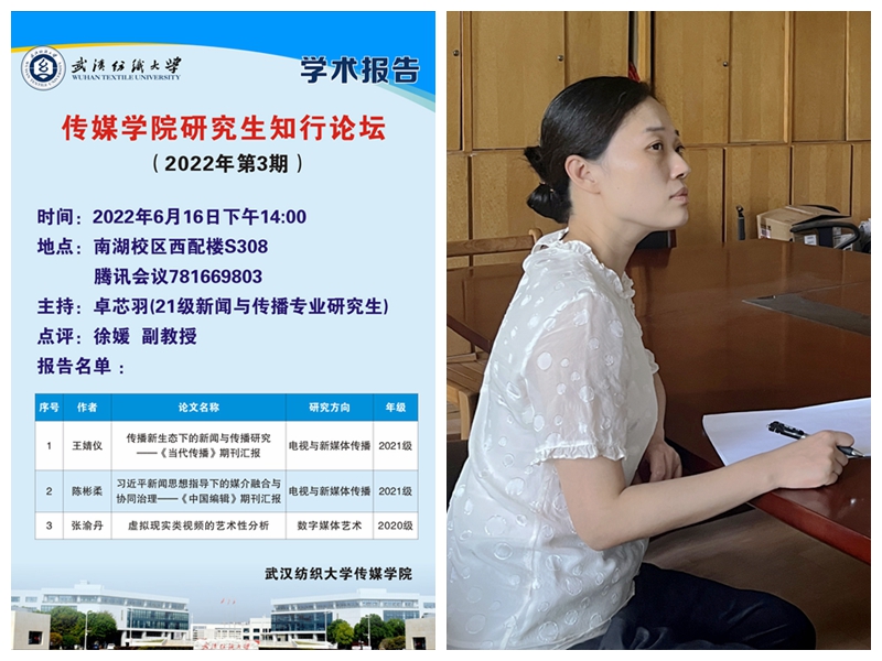 为营造健康学术生态,搭建研究生学术思想交流、碰撞平台,活跃学术气氛,2022年6月16日下午14点,2022年第3期研究生知行论坛在南湖校区西配楼S308顺利举行。365英国上市徐媛副教授担任本次研究生论坛评委,李展副教授参会,3名研究生参与主题汇报,接受学术洗礼。
