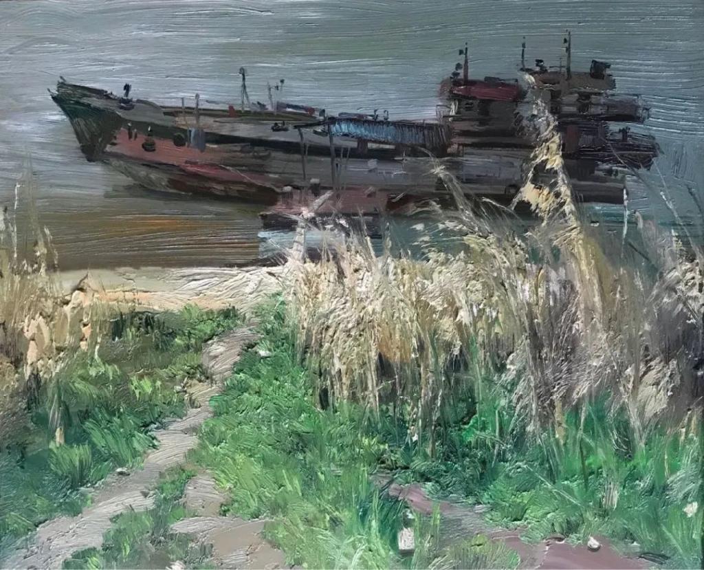 沈祥胜《登陆艇改装的货船》 油画80X120cm2017