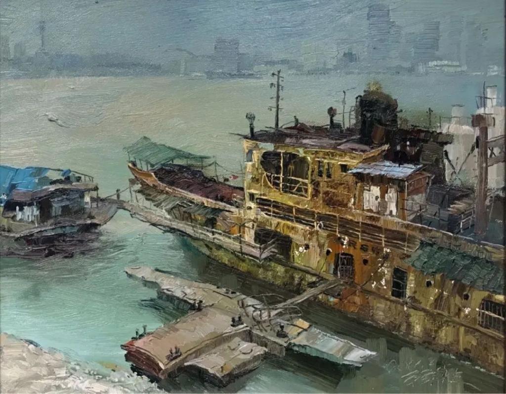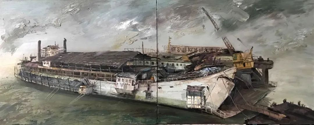 沈祥胜 《轮渡5号》 油画 50X100cm 2017