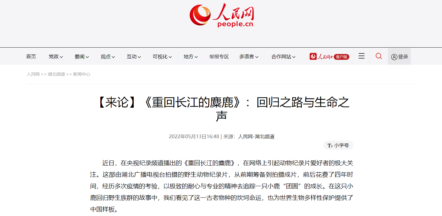 这部由湖北广播电视台拍摄的野生动物纪录片,在这只小鹿回归野生族群的故事中,我们看见了这一古老物种的坎坷命运,也为世界生物多样性保护提供了中国样板。