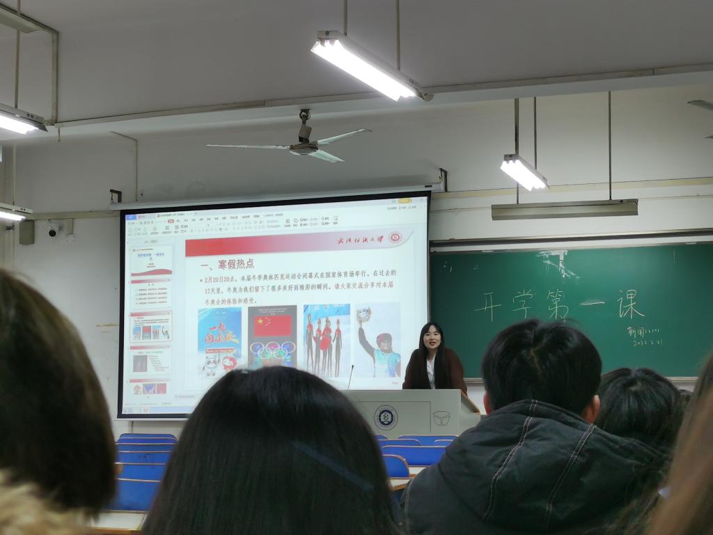 班会上,同学们以“冬奥盛会展风采,运动拼搏显魅力”为主线,共同回顾本届冬奥会精彩瞬间、感动记忆和拼搏精神,并对本届冬奥会的体验和感受进行交流分享。“冰墩墩、武大靖、谷爱凌、苏翊鸣、冰壶、滑雪”等冬奥元素人物成为分享中的热频词汇,“家国情怀、拼搏奋斗、青春力量、永不言弃、和谐向上”成为心得体会的共同写照。同学们从冬奥会精神中汲取力量,在新学期一起向未来。