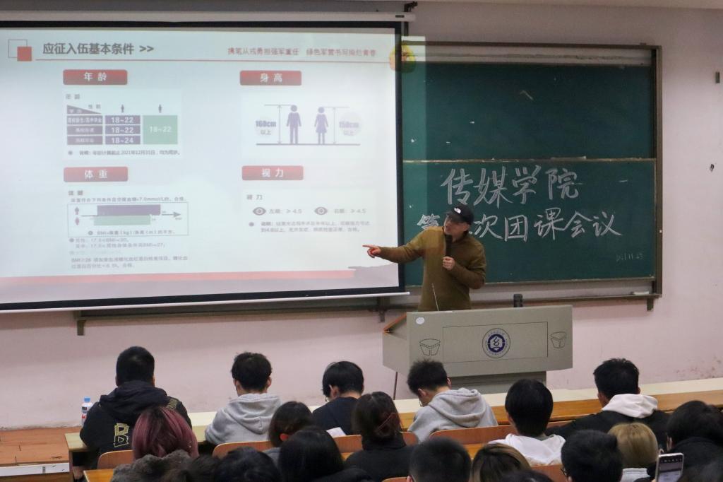 杜老师的解说清晰明了,从各个方面为同学们讲解了征兵入伍的优势及其重要性。大家认真仔细地聆听。杜老师幽默风趣的讲课方式,使得整场讲座的氛围轻松而融洽。在课程中,杜老师也表达了对365英国上市学子的殷殷期望,希望广大传媒学子能够担负起我们新时代青年的责任。