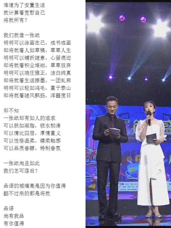 由广告专业的邹亚敏同学创作的广告文案《不将就》获得了企业命题广告文案类全国铜奖,该作品针对恒安品诺黑白经典系列产品的核心卖点:四层加厚、锁水韧滑、臻柔触感、Black Code香氛,分别有厚、滑、柔、香,就像人的特征一样,情厚、肤滑、温柔、人品香醇,文案通过“人似纸”将就生活,“纸似人”追求品质,两相对比,突出品诺的纸匠心质造,是追求高品质的好选择。